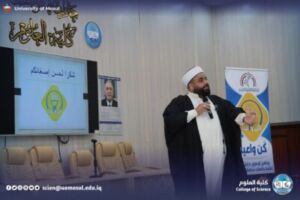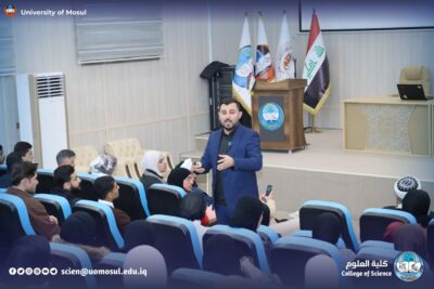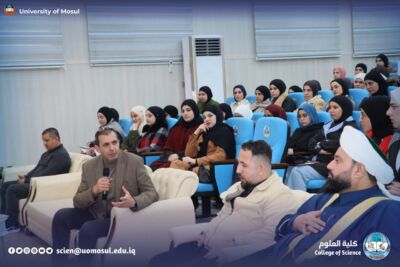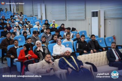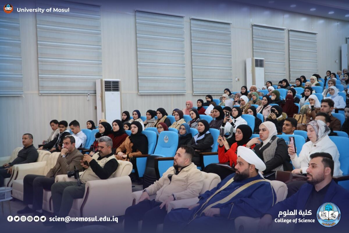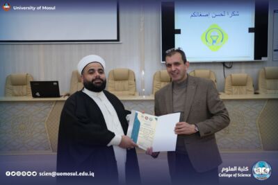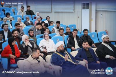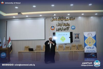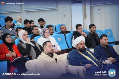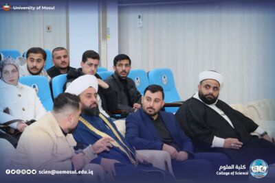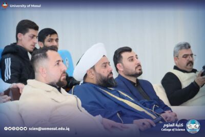Under the patronage of the president of the University of Mosul, prof. Dr. Wahid Mahmoud Brahimi, and under the supervision of the dean of the College of science, prof. Dr. Hiyam Adel Ibrahim, the College of science organized on Sunday, December 7, 2025 an awareness workshop entitled (Be aware), in which Mr. Kazim Faisal Ali and Sheikh Abdul Hakim Abdul Sattar Iskandar hosted to talk about the safety of intellectual security and its impact on the protection of society.