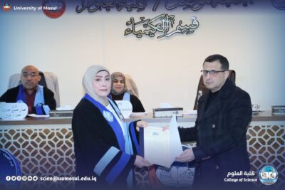 The tagged master’s thesis was discussed at the Department of Chemistry at the College of Science / University of Mosul, today, Sunday, December 7, 2025:
