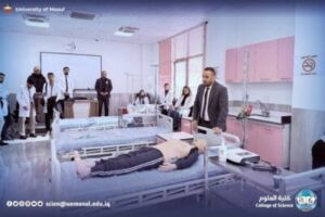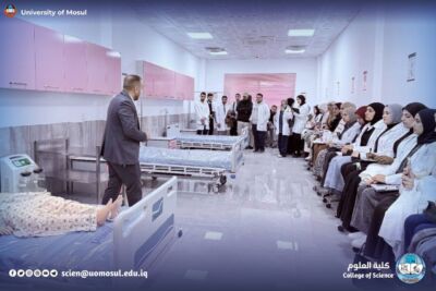In an effort to consolidate the prospects of scientific cooperation between Iraqi universities, enhance education programs and intensify areas of development related to academic institutions and their affiliates, the Department of medical physics organized a scientific visit for students of the third stage of Morning study accompanied by a number of department teachers to the College of Nursing at Al-Hadba National University on the day of Tuesday, December 2nd 2025 the dean of the College of nursing, Prof. Dr. Hamad Jandari Juma, accompanied by a number of faculty teachers, was at the reception . The purpose of the visit was to enhance the scientific aspect among the students and to get acquainted with the College of nursing, its scientific laboratories and the advanced scientific equipment in all specialties.