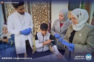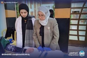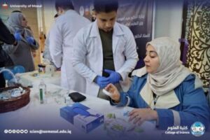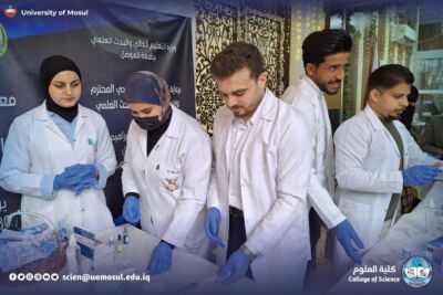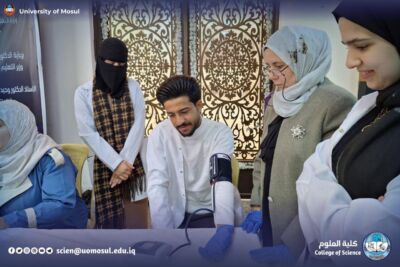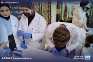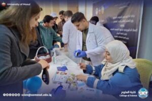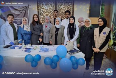Under the patronage of the president of the University of Mosul, professor Dr. Wahid Mahmoud Brahimi, and under the supervision of the dean of the College of science, professor Dr. Hiyam Adel Ibrahim, the women’s Affairs Committee at the College of Science, in cooperation with the student activities unit and a number of teachers of the Department of Biology sciences and the women’s Affairs Unit at the university presidency, organized an event on the occasion of the International Volunteer Day, at the student center of the University of Mosul on Tuesday morning, December 9, 2025.