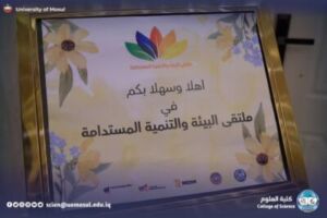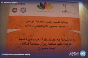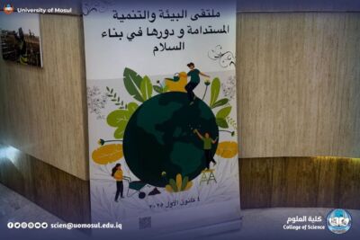 Under the patronage of the blessing of the president of the University of Mosul, professor Dr. Wahid Mahmoud Brahimi, and the supervision of the dean of the College of science, professor Dr. Hiyam Adel Ibrahim, in cooperation with the Rizan Organization for development and development, and with the knowledge and presence of the members of the Faculty Council, the forum “Environment Sustainable Development and its role in building peace” at my city hall in Mosul.
