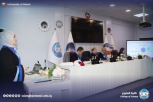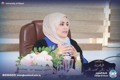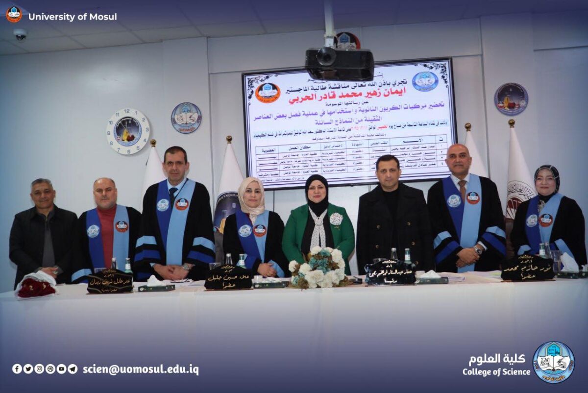 On Thursday, December 11, 2025, the Chemistry Department of the College of Sciences discussed the master’s thesis submitted by the student (Iman Zahir Mohammed QADIR) and tagged “preparation of carbon nanocarbons in the process of separation of some heavy elements from liquid forms”, in the presence of the dean of the College, Prof. Dr. Hiyam Adel Ibrahim, the administrative and Scientific Assistants of the Dean, the head of the Chemistry Department, Assistant Professor Dr. Firas Ahmed my best college teacher.
