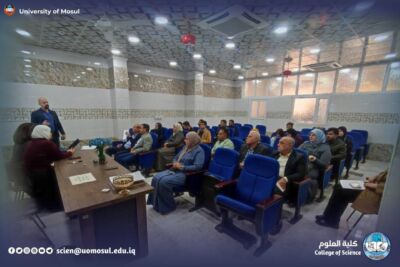 Under the patronage of the president of the University of Mosul, prof. Dr. Wahid Mahmoud Brahimi, and under the supervision of the dean of the College of science, prof. Dr. Hiyam Adel Ibrahim al-Taie, and the follow-up of the head of the Department of New and Renewable Energies, assistant prof. Dr. Ahmed Munir Suhail, the Department of New and Renewable Energies at the College of science organized a scientific workshop entitled: