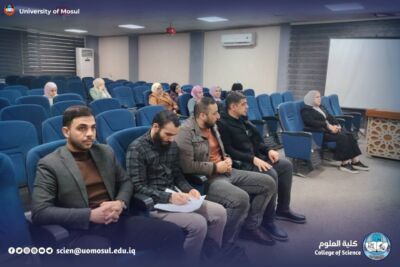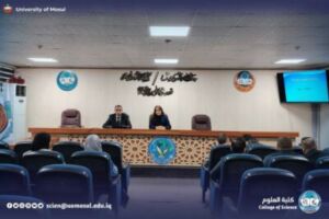 Under the auspices of the president of the University of Mosul, Prof. Dr. Wahid Mahmoud Brahimi, and under the supervision of the dean of the College of Science, Prof. Dr. Hiyam Adel Ibrahim, the women’s Affairs Committee at the College of Science, in cooperation with the Department of studies and Planning / Sustainable Development Unit, The Human Rights Unit, the scientific promotions committee, and the women’s Affairs Unit at the university presidency, organized a training course entitled ” professional ethics and instructions for scientific promotion” :