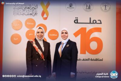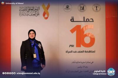 Professor Dr. Hiyam Adel Ibrahim, dean of the College of science, participated in the activities of the Sixteen Days campaign to combat violence against women in Mosul, an annual Global Initiative held between November 25 (international day for the elimination of violence against women) and December 10 (international human rights day) .