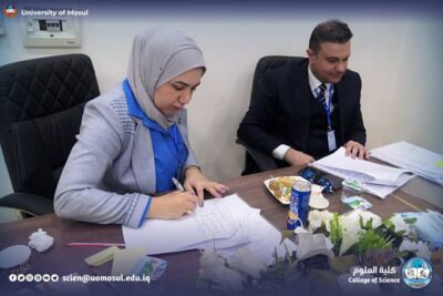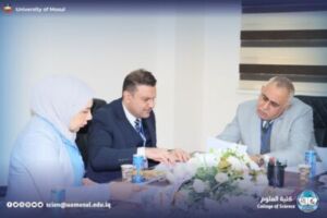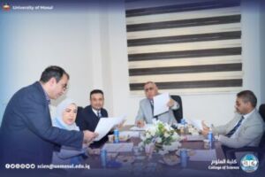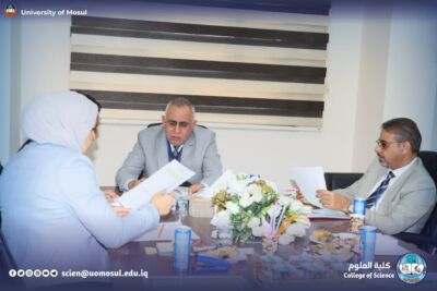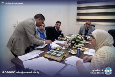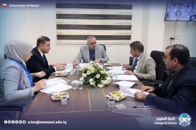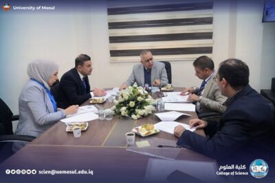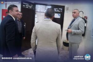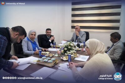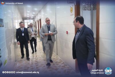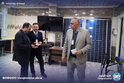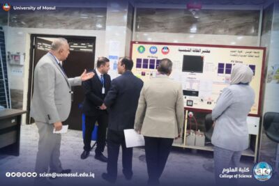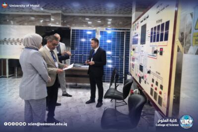 In accordance with the directives of the president of the University of Mosul, Prof. Dr. Wahid Mahmoud Ibrahim, and under the supervision and guidance of the dean of the College of Science, Prof. Dr. Hiyam Adel Ibrahim, and the follow-up and presence of the head of the Department of New and Renewable Energies, assistant professor Dr. Ahmed Munir Suhail, the Department of new energies received and renewed on Thursday, December 11, 2025, a ministerial committee consisting of specialized professors from Baghdad University, Mustansiriya University and Basra University on a field visit aimed at reviewing the material and human capabilities available in the department, and studying Application for the creation of a master’s program in it. The ministerial committee conducted a comprehensive tour, which included scientific laboratories, classrooms, corridors of the department and its library, where it reviewed the infrastructure supporting the academic and research career. After completing the tour and seeing the available possibilities, the committee expressed its support for the opening of a master’s study in the Department.