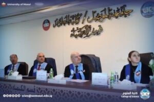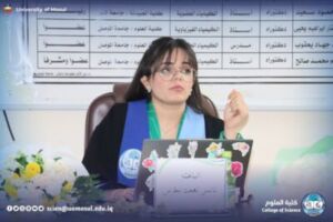 The dean of the College of science, professor Dr. Hiyam Adel Ibrahim, presented a letter of thanks and appreciation to Professor Dr. Shaker Mahmoud said for chairing the student discussion Committee.