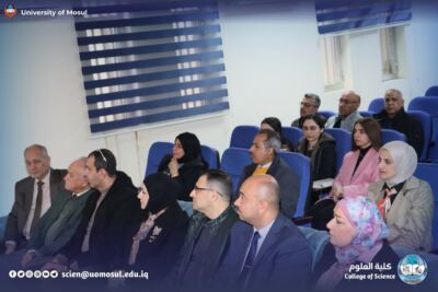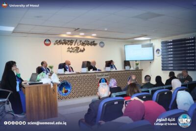The dean of the College of science, professor Dr. Hiyam Adel Ibrahim, presented a letter of thanks and appreciation to Professor Dr. Shaker Mahmoud said for chairing the student discussion Committee.