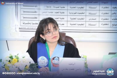 The discussion committee consisted of Mr. Prof. Dr. Shaker Mahmoud Saeed from Al Noor University (President), and Prof. Dr. Ammar Abdul Sattar Ibrahim (member), Dr. Tahani Walid jihad Yacoub (member) and Prof. Dr. Salem Jassim Mohammed Saleh (member and supervisor).