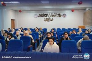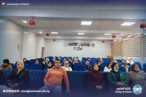 Under the patronage of the president of the University of Mosul, Prof. Dr. Wahid Mahmoud Brahimi, and under the supervision of the dean of the College of Science, Prof. Dr. Hiyam Adel Ibrahim al – Taie, the Department of Chemistry at the College of Science-University of Mosul, as part of continuing education activities, organized a scientific workshop entitled “chromium element and its relationship to obesity”, on Tuesday, December 16, 2025, on the premises of the conference hall in the Department of chemistry, in the presence of a number of college teachers and students.