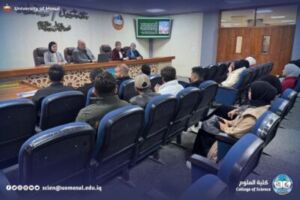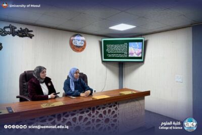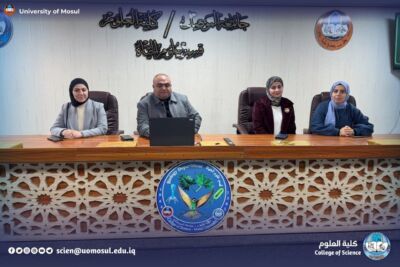 Under the patronage of the president of the University of Mosul, Prof. Dr. Wahid Mahmoud Brahimi, and under the supervision of the dean of the College of Science, Prof. Dr. Hiyam Adel Ibrahim al-Taie, and within the continuing education activities; the Department of biology sciences at the College of Science / University of Mosul held a scientific workshop entitled ” medicinal plants and sustainability… from biodiversity conservation to green economy ” on Thursday, December 18, 2025, in the Hall of Mahmoud Haj Qasim, and in the presence of a number of teachers and students of the College of science.