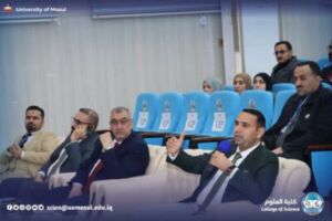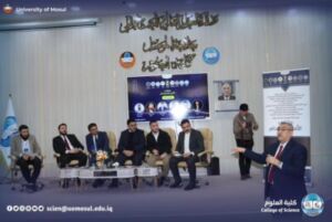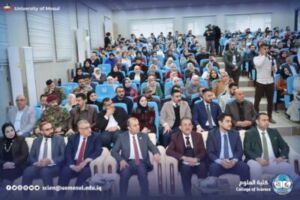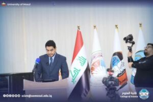 The meeting began with the Iraqi national anthem and the recitation of the Fatiha Surah on the souls of the martyrs of Iraq and verses of the wise memory, followed by an opening speech by the president of Mosul University, a speech by the representative of the research and Development Department, Dr. Musa al-Mousawi, and a lecture by the teacher from Ninawa University, engineer Harith al-Mufti the honorable Shafi’i.