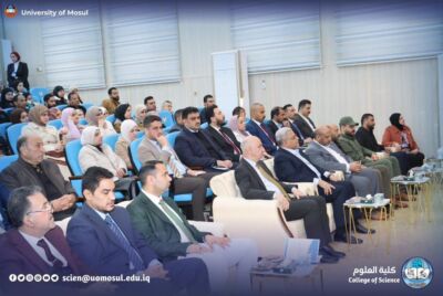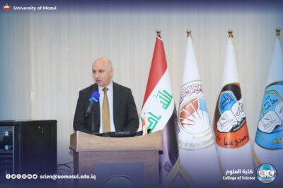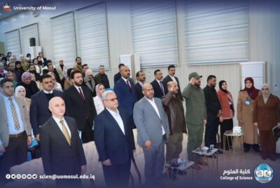 The meeting began with the Iraqi national anthem and the recitation of the Fatiha Surah on the souls of the martyrs of Iraq and verses of the wise memory, followed by an opening speech by the president of Mosul University, a speech by the representative of the research and Development Department, Dr. Musa al-Mousawi, and a lecture by the teacher from Ninawa University, engineer Harith al-Mufti the honorable Shafi’i.