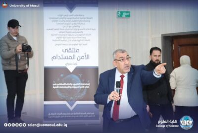 In keeping with the rapid scientific development witnessed by the world, under the auspices of the Office of the Iraqi prime minister, under the supervision of the Ministry of higher education and scientific research and in cooperation with the security media cell, the Ministry of Interior and the Popular Mobilization authority, and the University of Mosul represented by the president of the University, professor Dr. Wahid distinguished scientist Dr. Hiyam Adel Ibrahim, held at the University of Mosul (sustainable security forum) on Wednesday, December 24, 2025 at the welcome of Dr. Farouk al-Omari Hall (May Allah have mercy on him) at the College of science to discuss ways to achieve security in its comprehensive concept (technical, community and national) in a continuous and evolvable way, depending on modern knowledge and technologies such as artificial intelligence, which is the technical arm of sustainable security, as the College of science does not always miss making a clear and obvious difference in scientific, technical and security aspects, including the use of artificial intelligence tool in all fields to make tangible differences in building and maintaining a sound and secure scientific community. Dr. Haider al-Saadi, advisor to the Iraqi Prime Minister and chairman of the National Committee for awareness and Guidance, Dr. Fares Mahdi Alwan, Director General of Public Education, Dr. Khalil Al-Tayar, representative of the holy shrine of Husseiniya, Dr. Musa al-Mousawi, representative of the research and development department one of the commanders of the Joint Operations is Colonel Ali al-muhtarim.