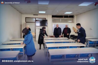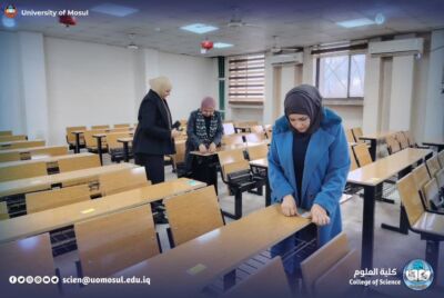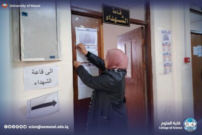 Under the generous guidance of the president of the University of Mosul, professor Dr. Wahid Mahmoud Brahimi, and under the direct supervision of the dean of the College of science, professor Dr. Hiyam Adel Ibrahim, and with the follow-up of the distinguished heads of departments, the College of science has completed all the necessary preparations for the start of the theoretical exams for the Departments of the college for the current academic year.