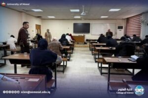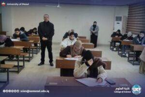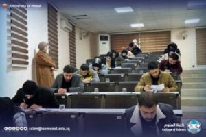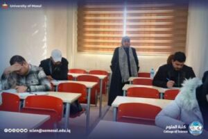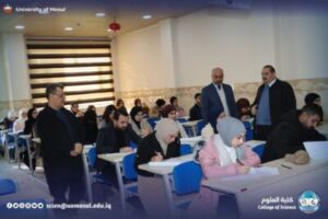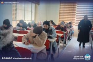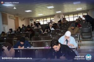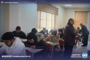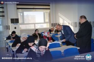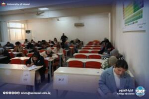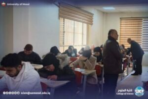 With a determination reflecting the ambition of science and a perseverance befitting a generation striving to build the future, the final theoretical examinations for the first semester of the 2025-2026 academic year continue at the College of Science, University of Mosul. These examinations are taking place in an academic atmosphere characterized by high discipline and meticulous organization, reflecting the commitment of the college’s deanship, college, and administrative staff to providing a comprehensive and secure examination environment for their students.