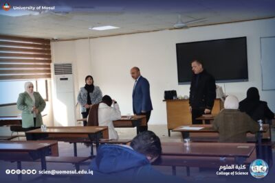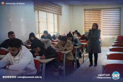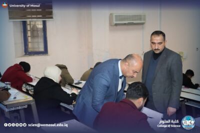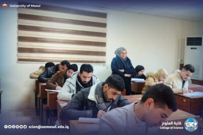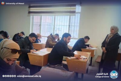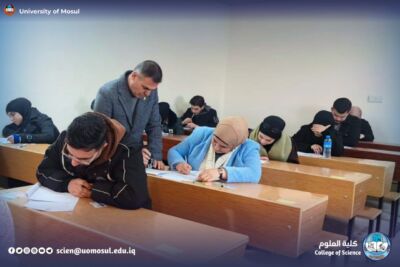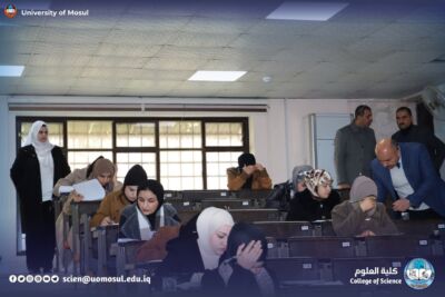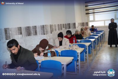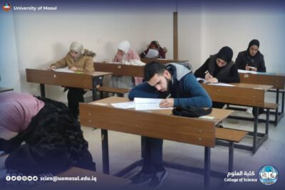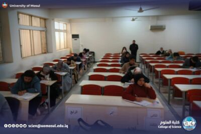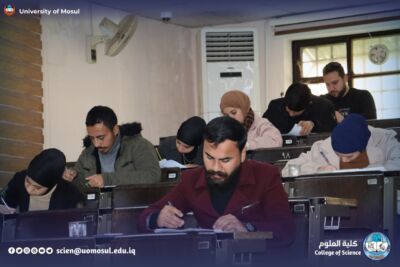 With a determination reflecting the ambition of science and a perseverance befitting a generation striving to build the future, the final theoretical examinations for the first semester of the 2025-2026 academic year continue at the College of Science, University of Mosul. These examinations are taking place in an academic atmosphere characterized by high discipline and meticulous organization, reflecting the commitment of the college’s deanship, college, and administrative staff to providing a comprehensive and secure examination environment for their students.