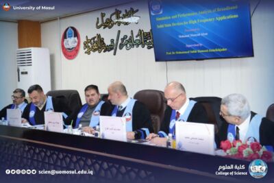 On Wednesday, January 7, 2026, the doctoral thesis submitted by the student Muhannad Moayed Elias, entitled ” simulation and analysis of the performance of broadband solid – state devices for high-frequency applications”, was discussed at the Physics Department of the College of Sciences-University of Mosul .