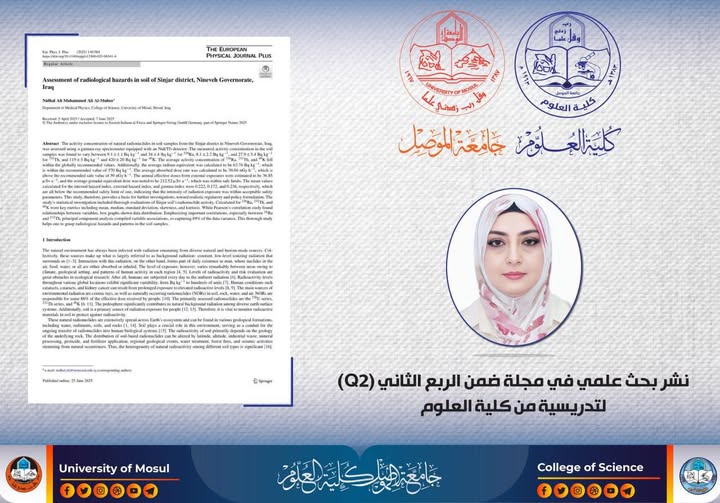 The research was entitled ” Assessment of radiation risks in the soil of Sinjar district in Nineveh Governorate – Iraq ” .