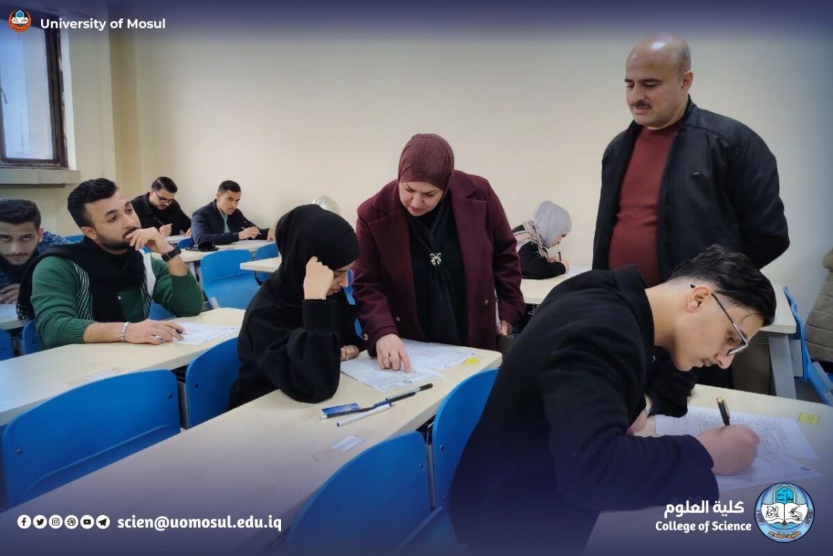 With God’s blessing, the College of science continues to conduct the final theoretical exams for the first semester of the academic year 2025-2026, under the direct supervision of the Deanship of the college and the examination committees, with adherence to the approved instructions and controls, to ensure the provision of the appropriate atmosphere to perform the exams smoothly and smoothly, where the dean of the College of Science, Professor Dr. Hiyam Adel Ibrahim esteemed to meet their needs.