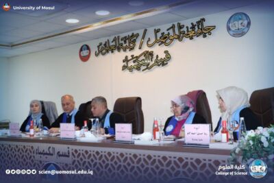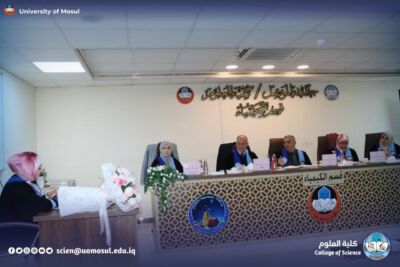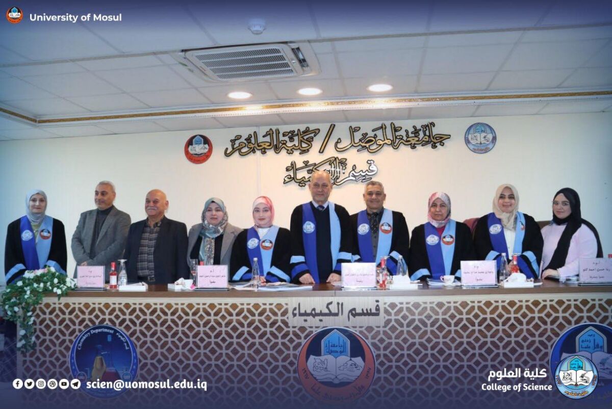 The Chemistry Department at the College of Science, University of Mosul, discussed a master’s thesis entitled “Using Modified Hydrogel in Removing Dissolved Pollutants from Water with a Kinetic and Thermodynamic Study of the Removal Process” on Tuesday, January 20, 2026, in the department’s discussion hall.
