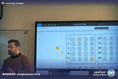 and under the supervision of the Head of the Department of Biology Sciences, Professor Dr. Amjad Abdulhadi Mohammed, and prior to the start of the final practical and theoretical examinations for first-year students, the Department of Life Sciences conducted a mock exam using the Bubble Sheet system for both morning and evening students on Wednesday, January 21, 2026.