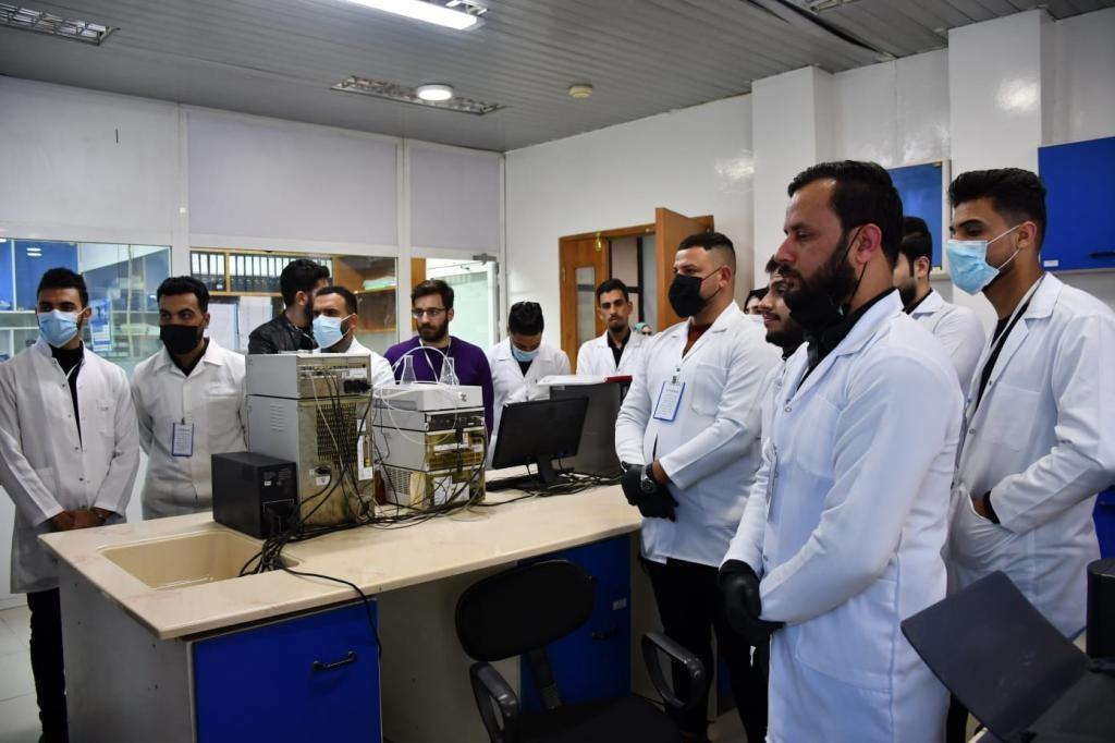 Under the guidance of the Dean of the College of Sciences, Assistant Professor Dr. Hiyam Adel Al-Taii, and under the supervision of the Head of the Department of Chemistry, Assistant Professor Dr. Salem Jassim Muhammad, the students of the fourth stage conducted a scientific trip on Wednesday morning, January 5, 2022, to the Samarra Pharmaceutical Company, accompanied by a number of the department’s professors.They were given an introductory lecture about the company, its history, production line and the nature of the raw materials used in production. A special tour was also conducted to view the company’s units, including the Standardization and Quality Control Unit, accompanied by Mr. Ibrahim, the assistant director of the company, during which an introductory lecture was given about this unit and its importance in production and introducing students On all devices used in this unit.