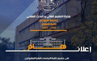 The Department of Biology at the College of Science, University of Mosul, discussed on Monday, August 25, 2025, the master’s thesis titled:“Genetic Diagnosis of Staphylococcus aureus (VRSA and MRSA) Isolated from Different Clinical Samples”,presented by [Read More]
