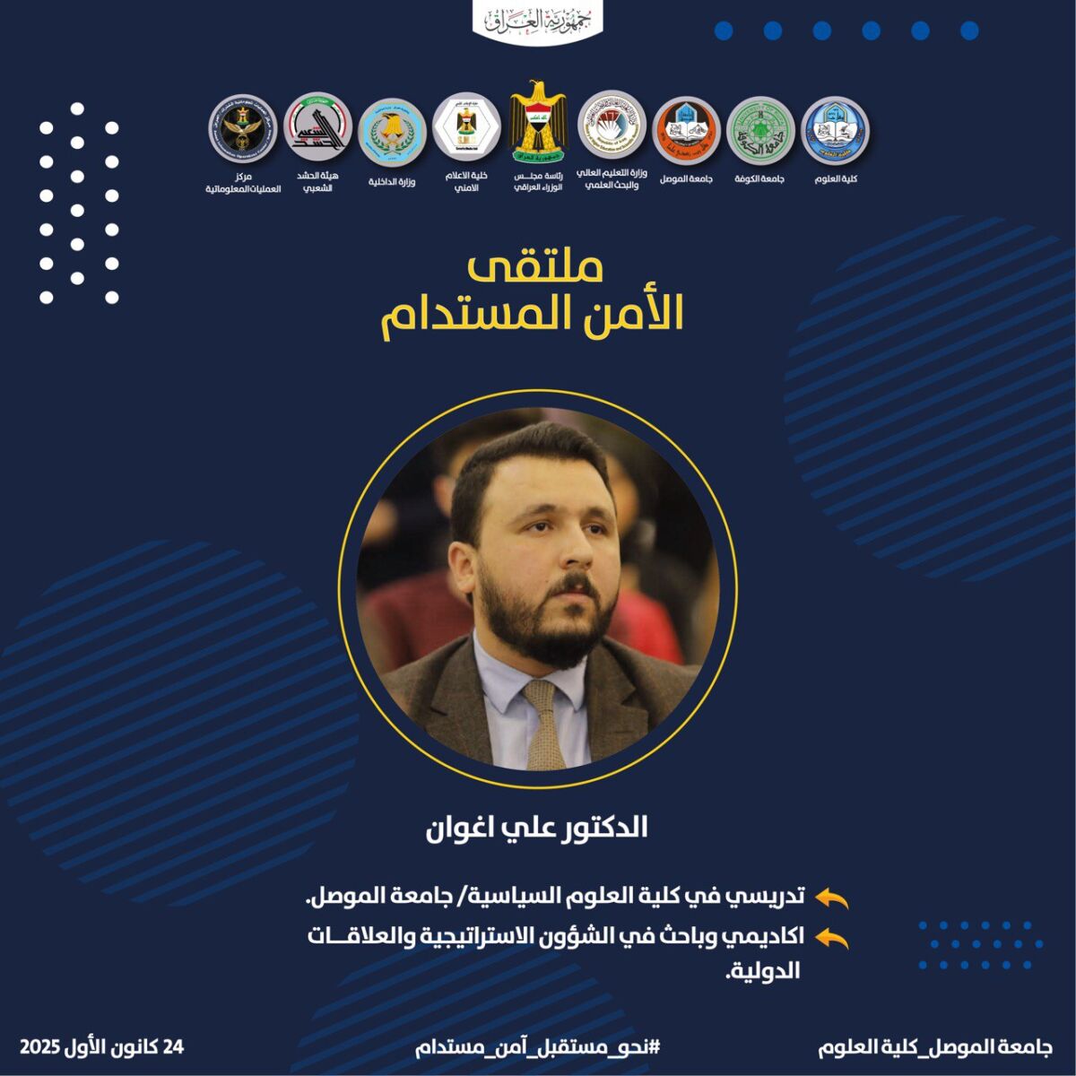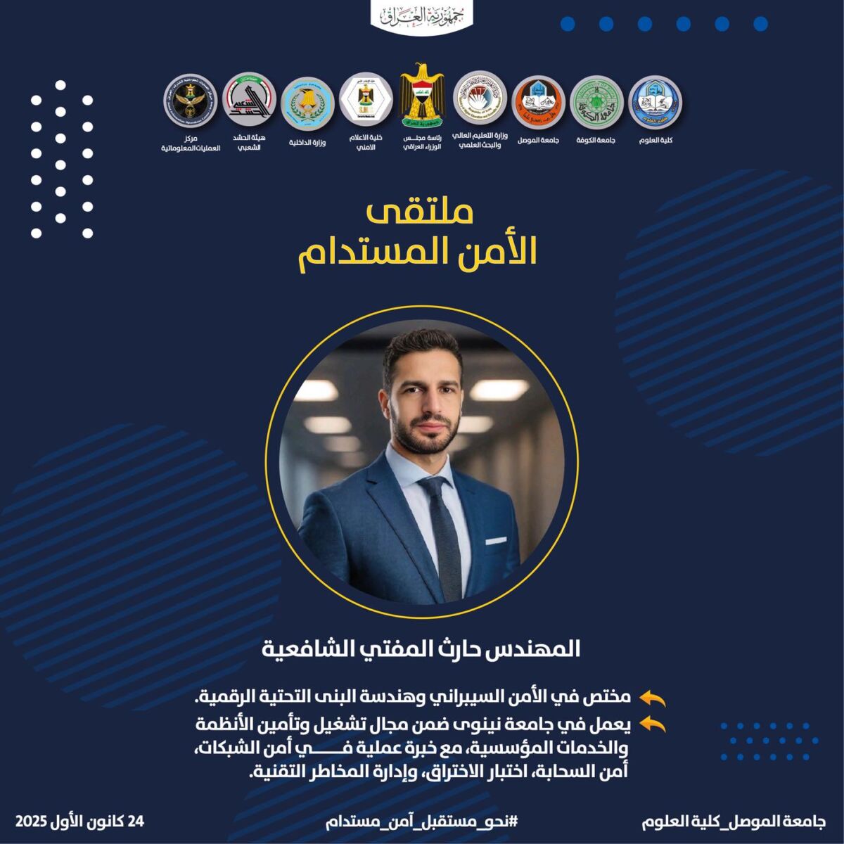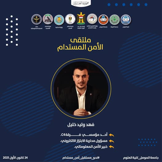 Within the activities of the Sustainable Security Forum, which will be held on Wednesday 24 / 12 / 2025 At the College of Science – University of Mosul / Farouk al-Omari Hall Lecture title: Cybersecurity [Read More]