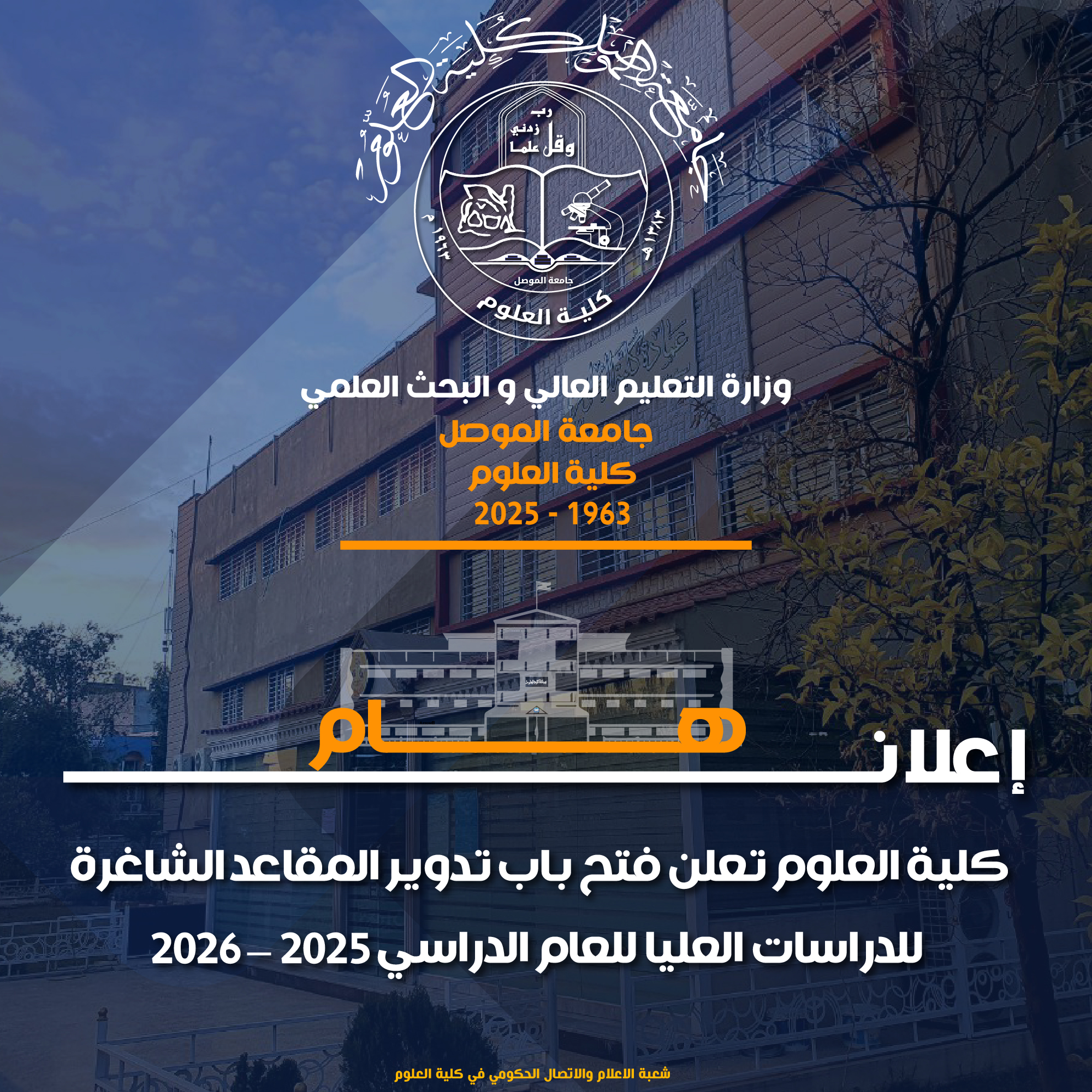 The College of Science at the University of Mosul has announced the opening of applications for transferring vacant seats for admission into graduate studies for the academic year 2025–2026. The College invites successful applicants in [Read More]