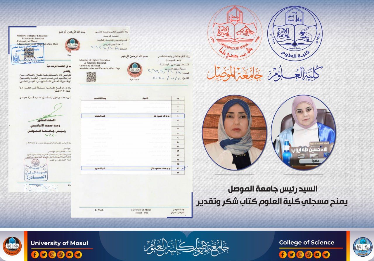 📢 President of the University of Mosul Awards Letter of Appreciation to College of Science Registrars