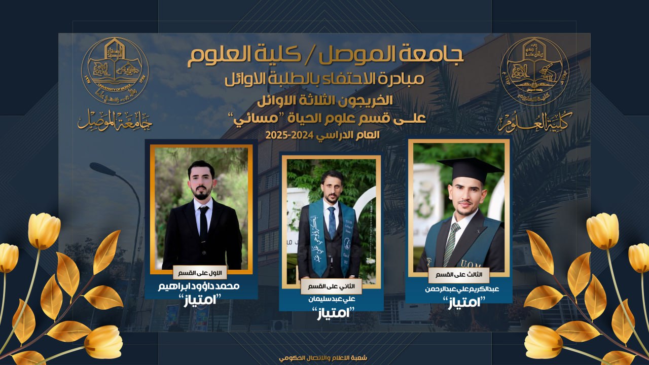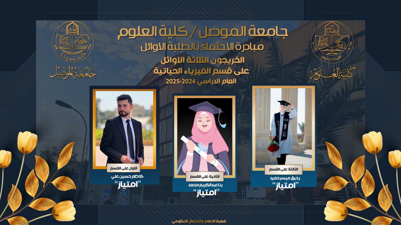 In a scene that reflects dedication and merit, the College of Science – Department of Biology (Morning and Evening Studies) proudly announces the top three ranking students of the fourth stage for the academic year [Read More]