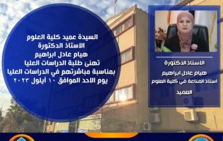 The Ministry of Higher Education has selected Dr. Khansa Muhammed Younis from the University of Mosul, College of Science, department of Biology to participate in a ministerial committee to consider preparations for the opening [Read More]
