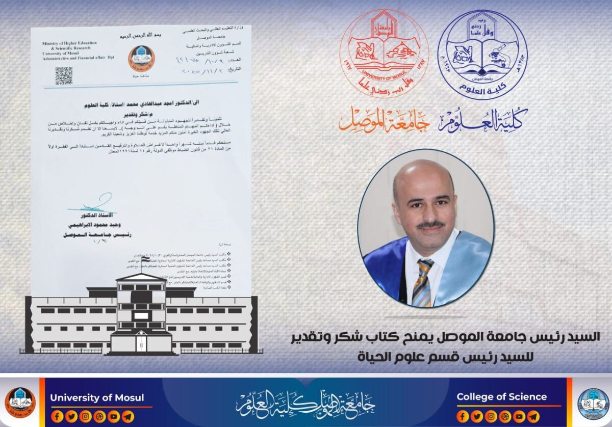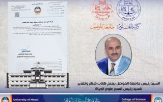 The head of the Department of Biology sciences at our college receives a letter of thanks and appreciation from the president of Mosul University