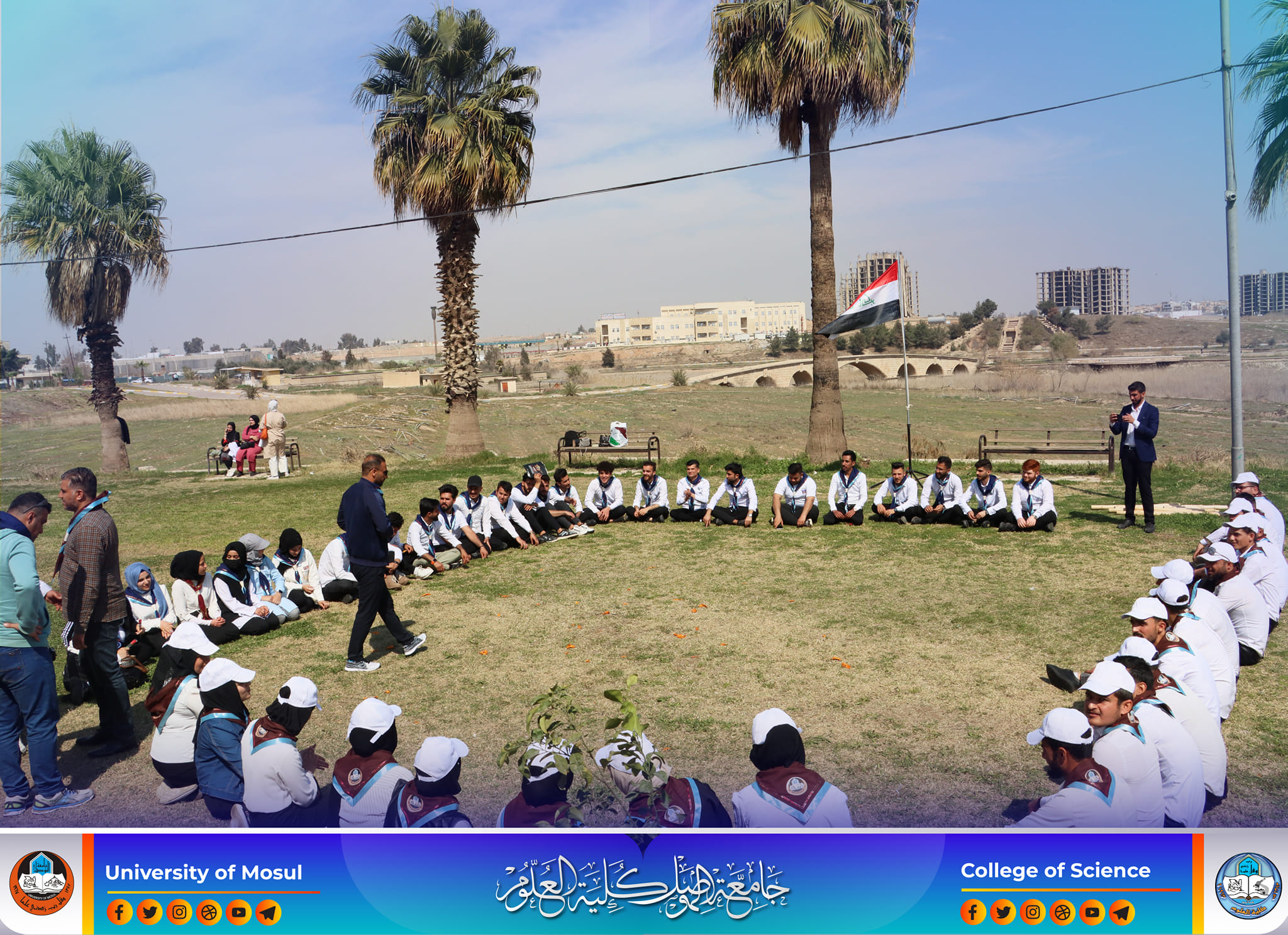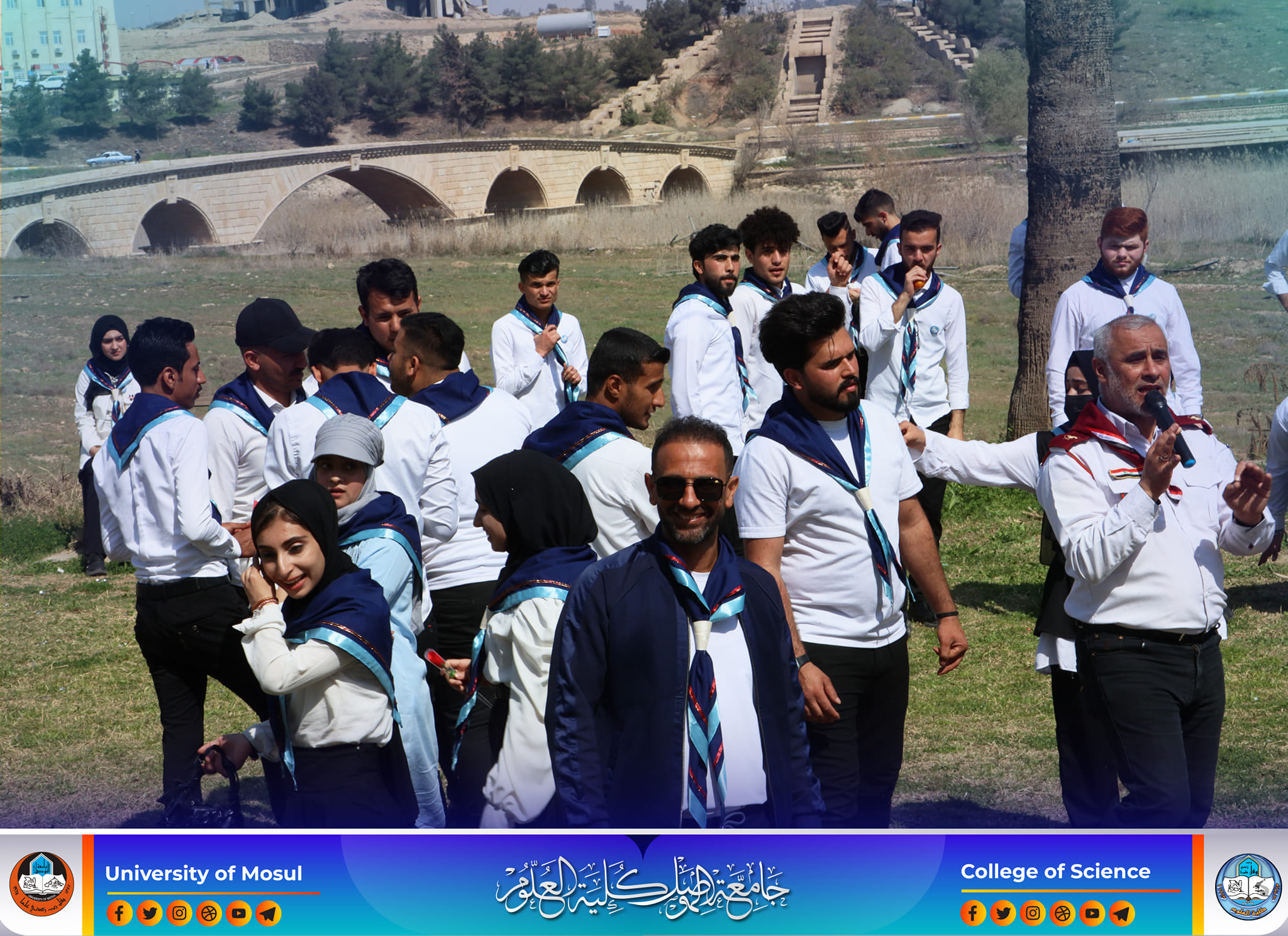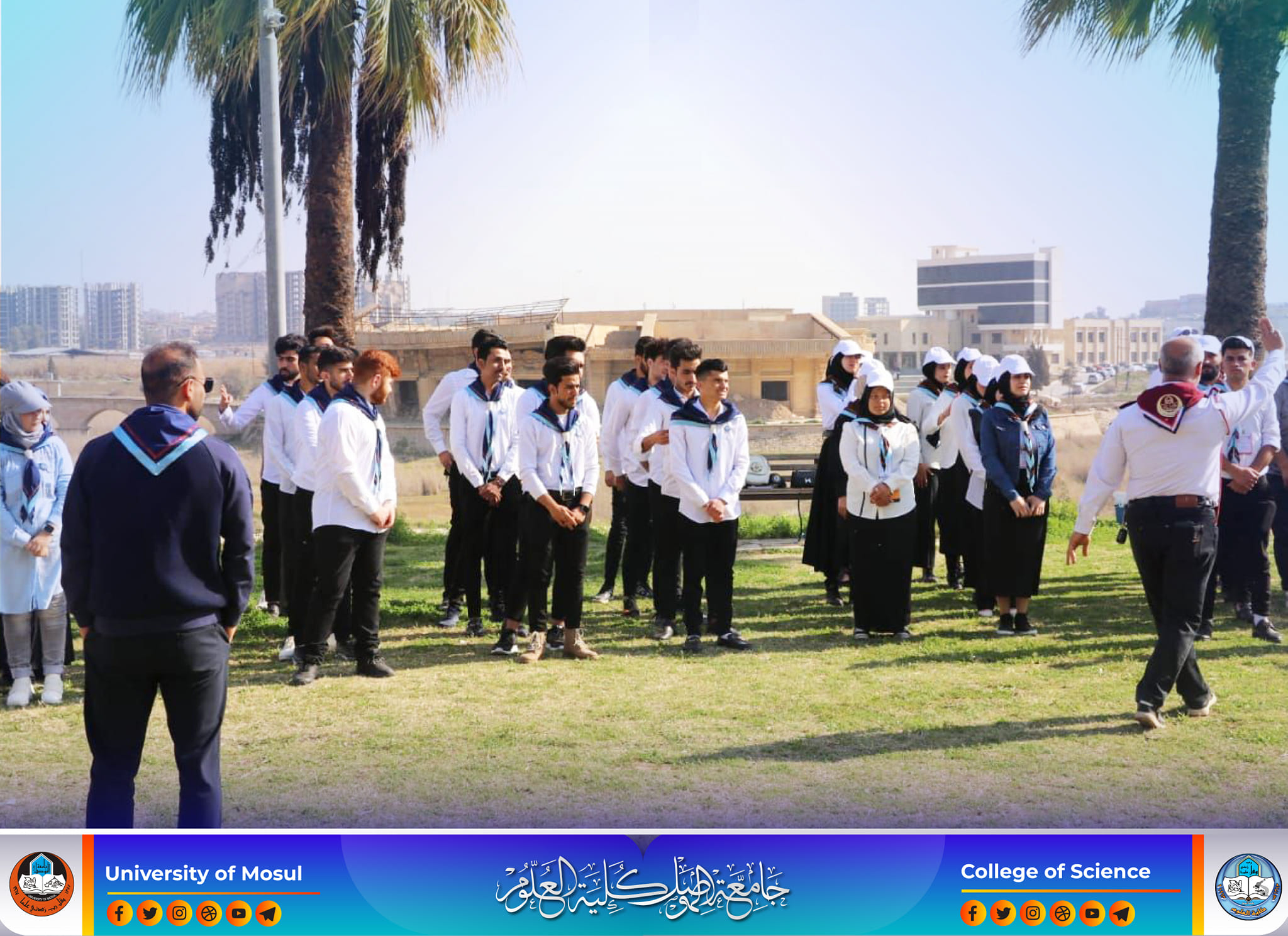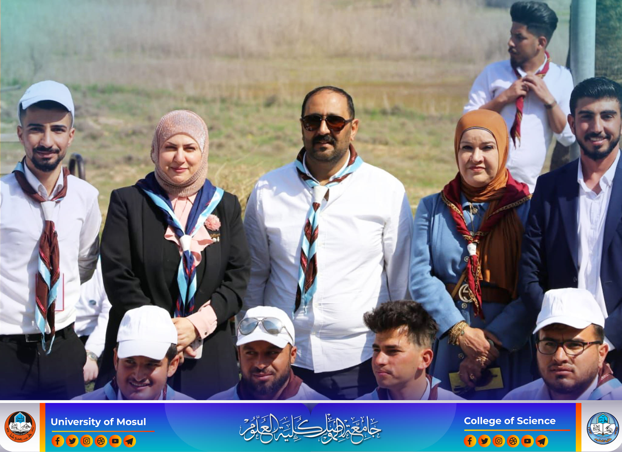 Under the patronage of the President of the University of Mosul, Professor Dr. Qusay Kamal Al-Din Al-Ahmadi, and under the supervision and presence of the Dean of the College of Science, Professor Dr. Hiyam Adel Ibrahim, the Student Activities Division of our college, in cooperation with the Student Activities Department at the Presidency of the University of Mosul, organized the Scout Camp for the college students on the morning of Monday, March 13, 2023.