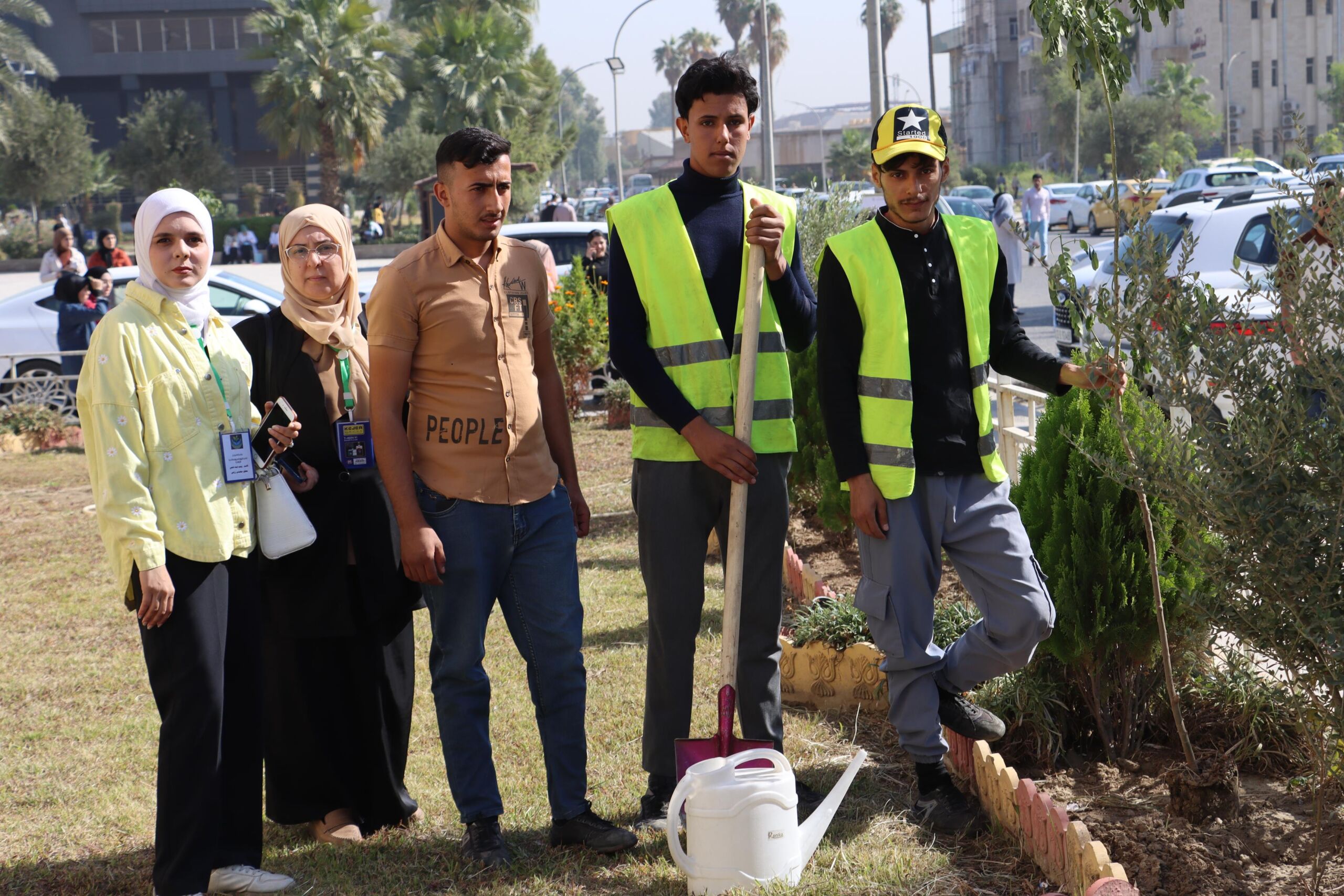 Under the slogan “Our Environment – Our Home”, and with the supervision and participation of the Dean of the College of Science, Professor Dr. Hiyam Adel Ibrahim, and in cooperation with the volunteers of the “Cleanliness Ambassadors” campaign, along with the participation of the Science Creativity Team, the College of Science organized a cleaning campaign for its departments and the gardens of the student center.