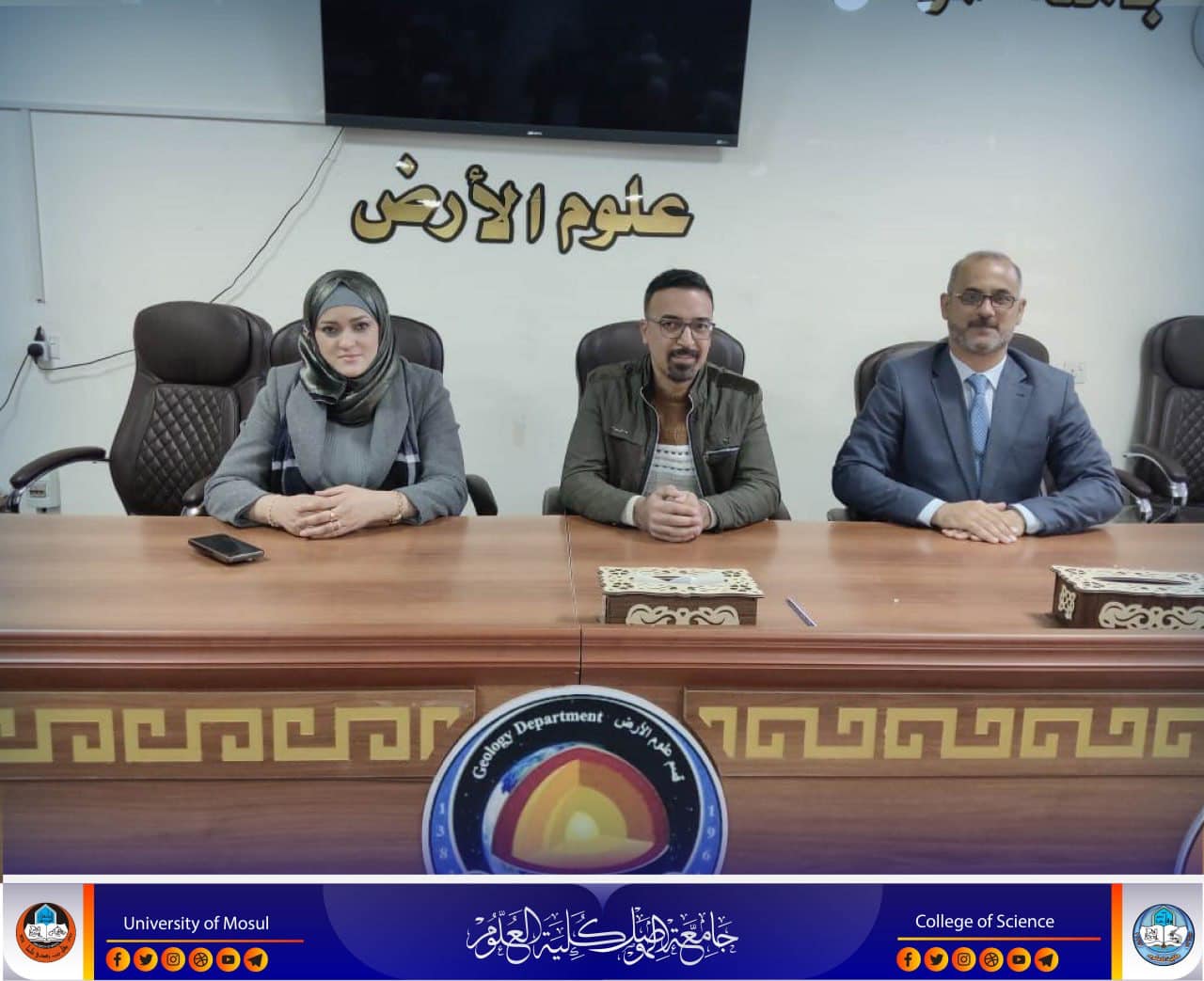With the start of the new academic year 2024-2025, and under the direction of the esteemed Dean of the College of Science, Prof. Dr. Hiyam Adel Ibrahim, the respected Head of the Department of Earth Sciences, Prof. Dr. Omar Ahmed Mulood Al-Badrani, met with the first-year students on Sunday, December 1, 2024. The meeting was attended by Dr. Saddam Issa Mustafa, the department secretary, and Dr. Rania Abdulilah Mahmoud, the head of the Educational Guidance Unit in the department.