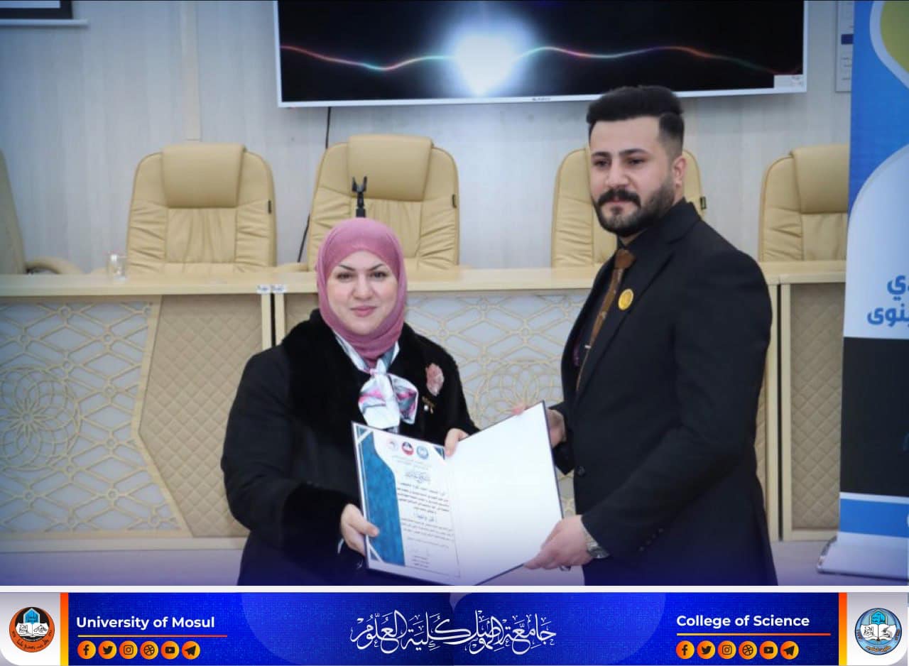 The final results concluded with student Abdulrahman Majid from the Department of Biology winning first place. He also secured eighth place at the level of all University of Mosul colleges. The second place went to student Abdulwahab Mohammed from the Department of Chemistry, while third place was claimed by student Abdulaziz Moataz, also from the Department of Chemistry.