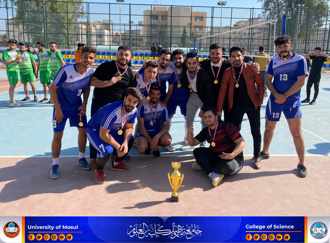 Under the patronage of the President of the University of Mosul, Professor Dr. Qusay Kamal Al-Din Al-Ahmadi, and under the supervision of the Dean of the College of Science, Professor Dr. Hiyam Adel Ibrahim, the Student Activities Division at the College of Science held the final volleyball match on Sunday, February 11, 2024.