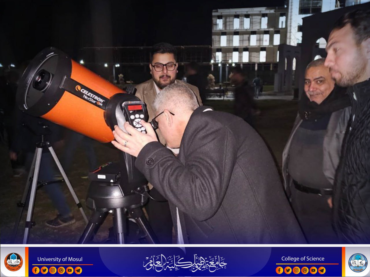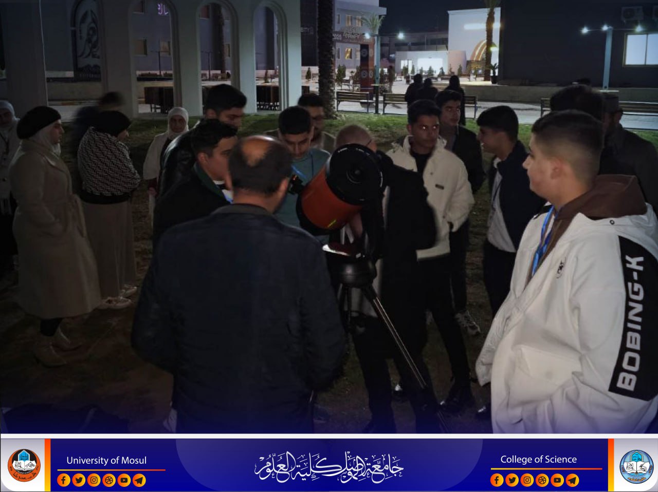 The Mosul Science Astronomy Team from the University of Mosul – College of Science participated on Saturday, December 7, 2024, in an astronomical evening using the College’s telescope, hosted in the gardens of Al-Noor University College, along with several astronomy teams from Nineveh Governorate.
