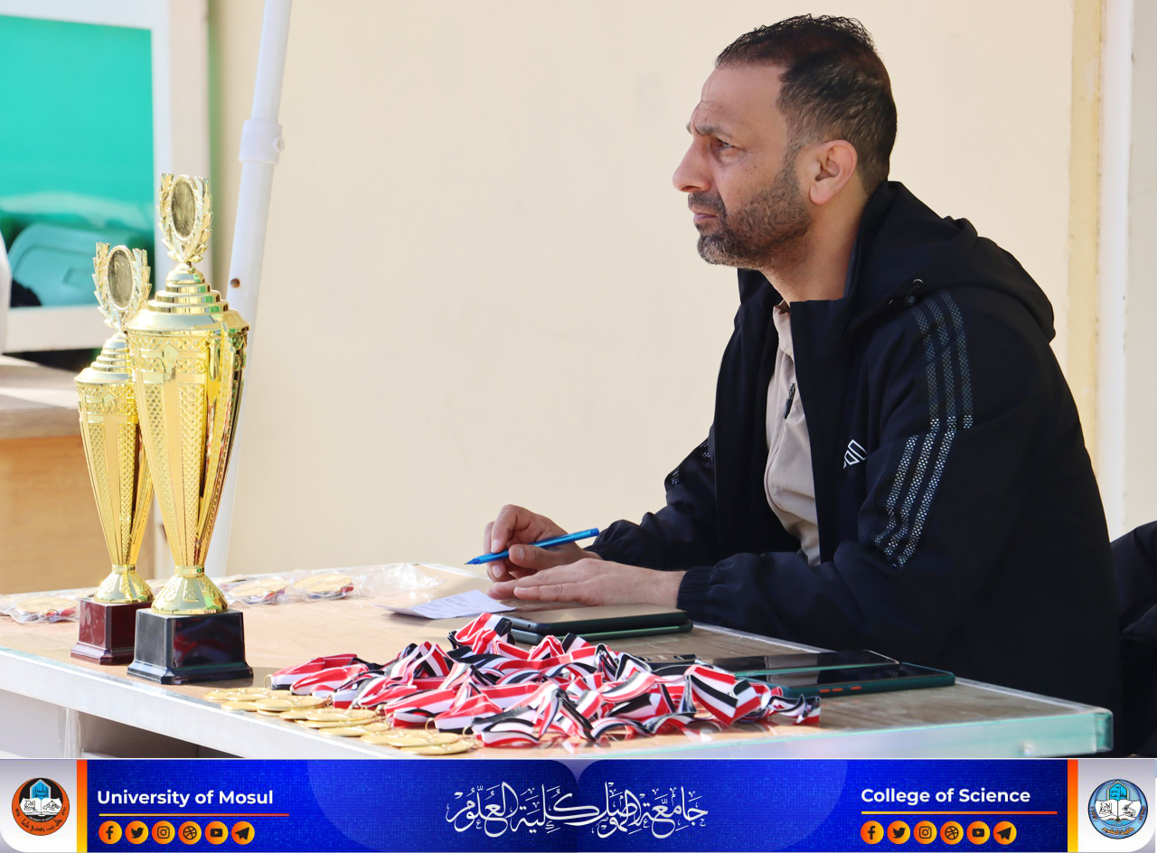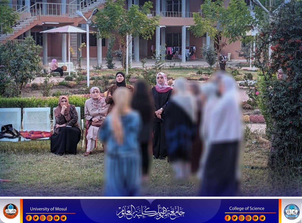 With the support of the Dean of the College of Science, Professor Dr. Hiyam Adel Ibrahim, and her encouragement of artistic activities, and under the supervision and follow-up of the Sports Activities Division in the college, represented by Lecturer Mohammed Sharqi Hadi and Mr. Imad Tahseen Ibrahim,