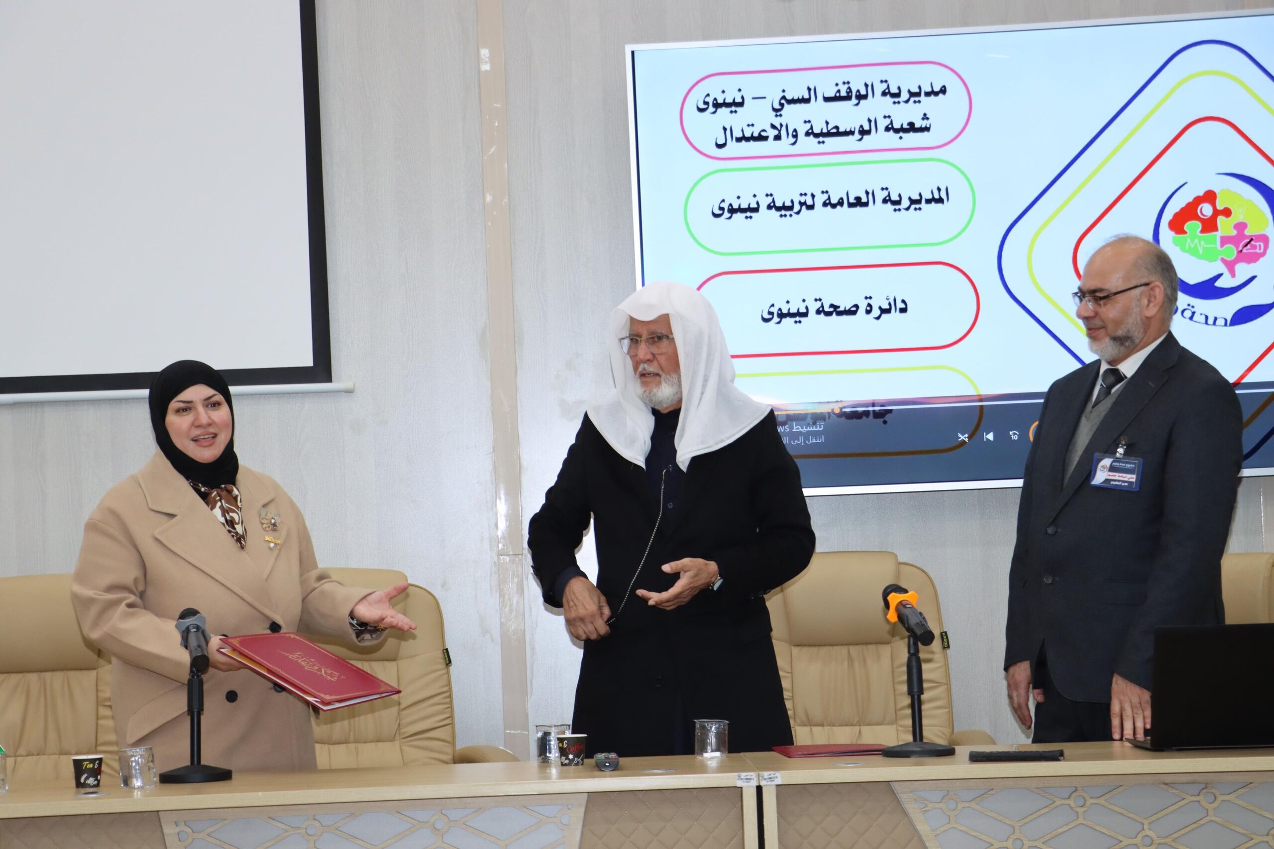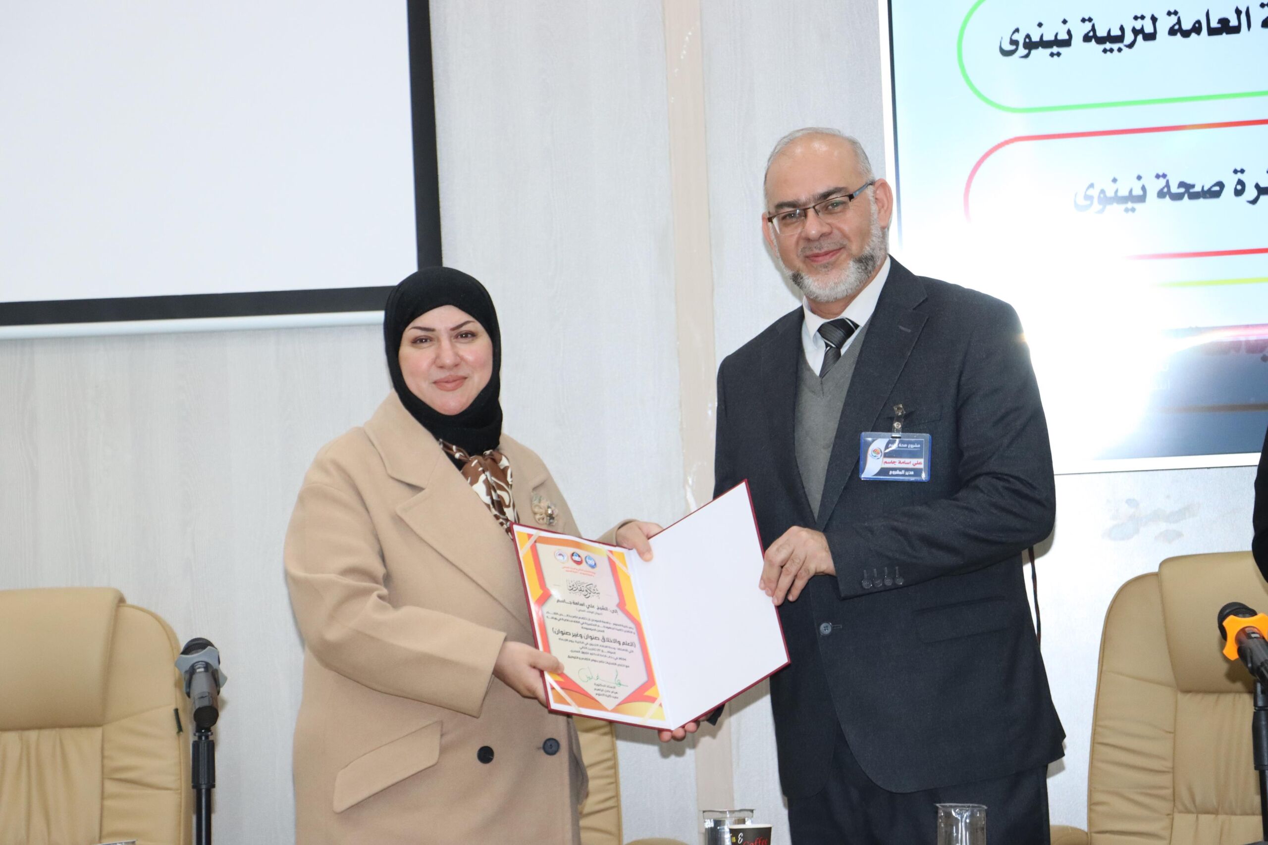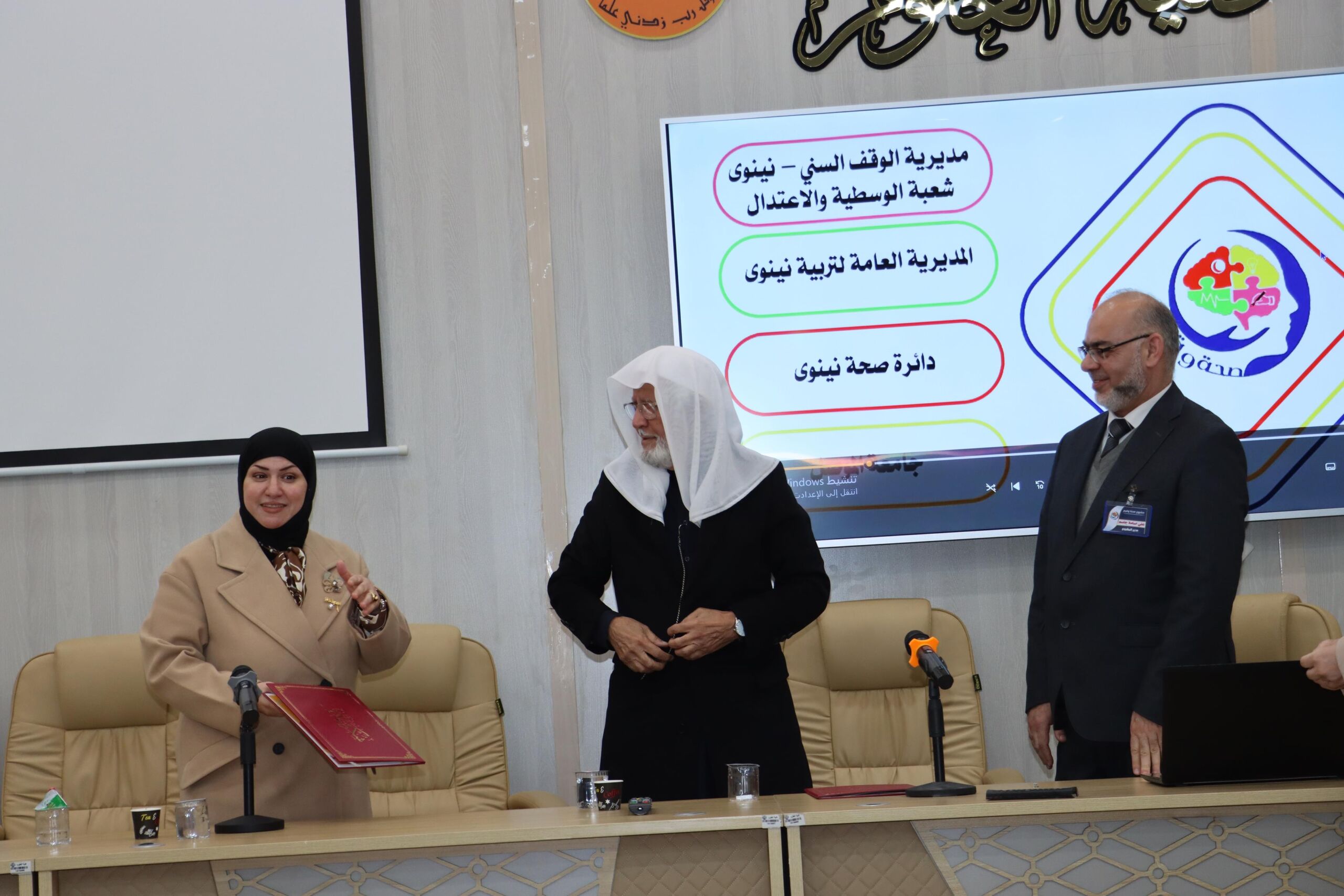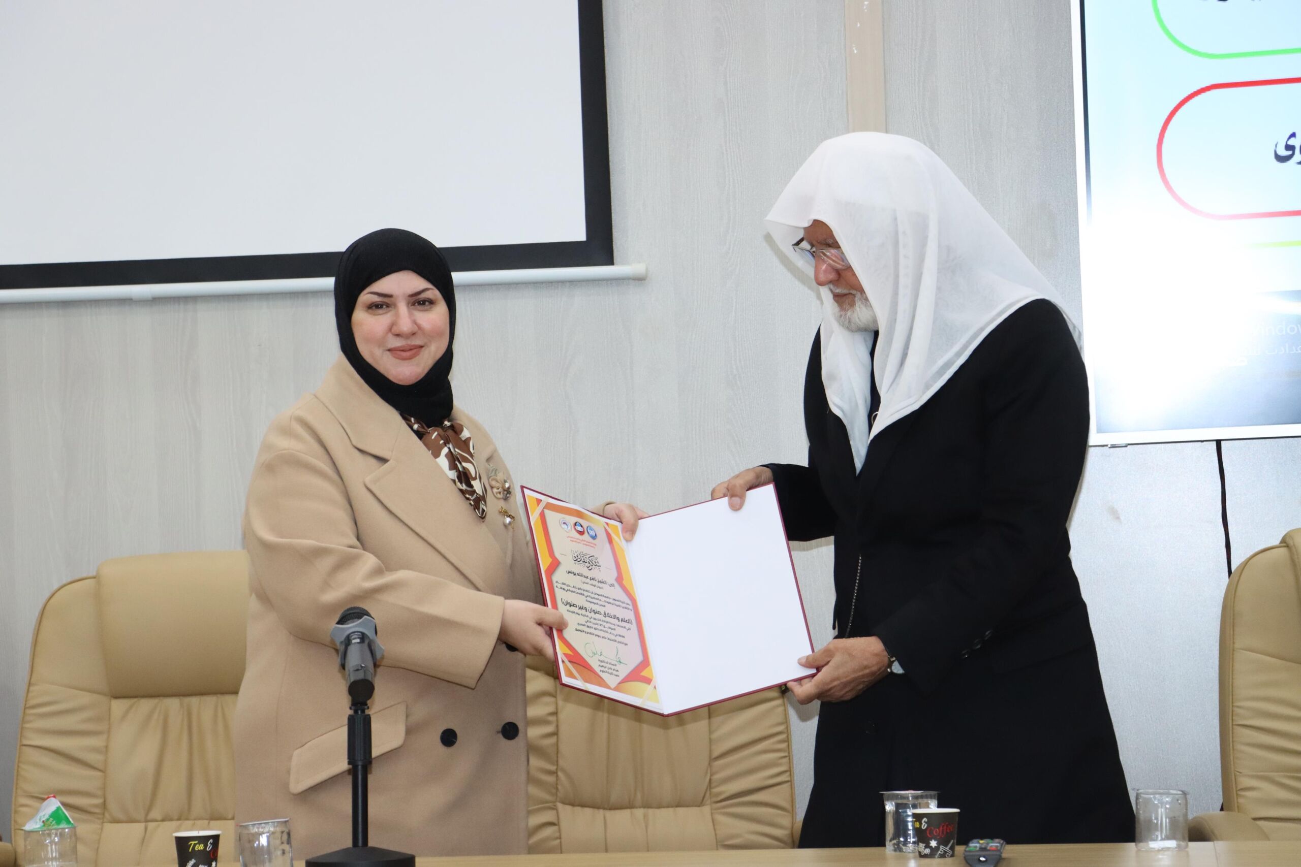At the conclusion of the lecture, the esteemed Dean of the College presented certificates of appreciation to the organizers of the lecture and expressed her gratitude to the Nineveh Directorate for Combating Intellectual Terrorism, represented by its Director General and the contributors to delivering such lectures and training courses. She reaffirmed the College’s and the University’s commitment to further collaborative efforts in all activities and events.