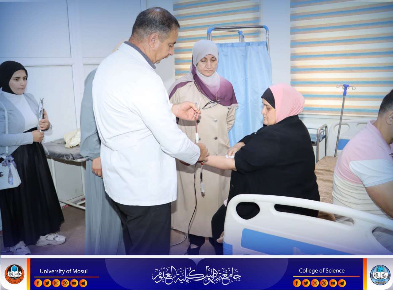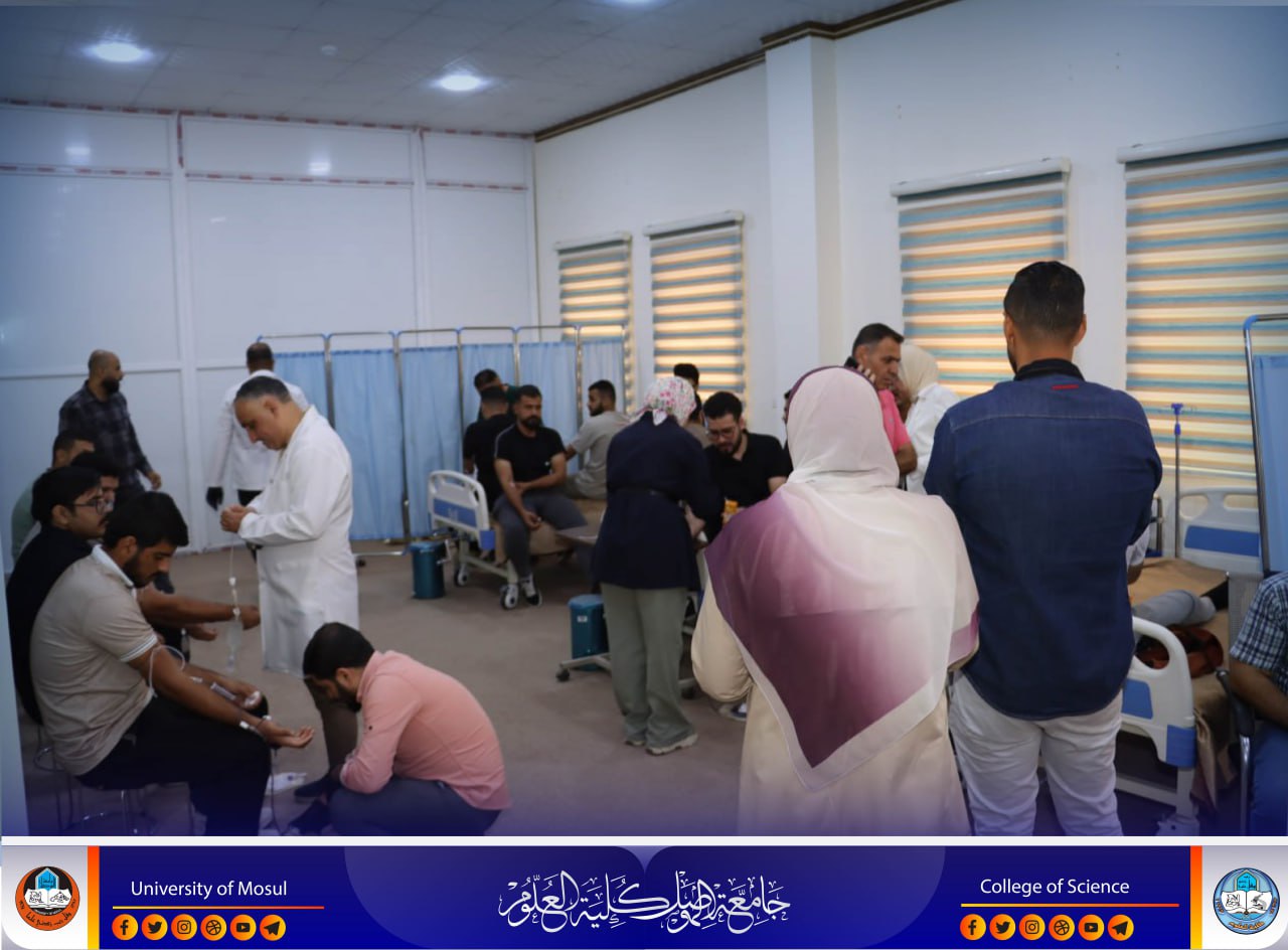 As part of the activities of the College of Science, and in line with the directives of the respected President of the University of Mosul, Prof. Dr. Waheed Mahmoud Al-Ibrahimi, and under the supervision of the esteemed Dean of the College of Science, Prof. Dr. Hiyam Adel Al-Taie, and in cooperation with the Scientific Care Department / Ministry of Youth,