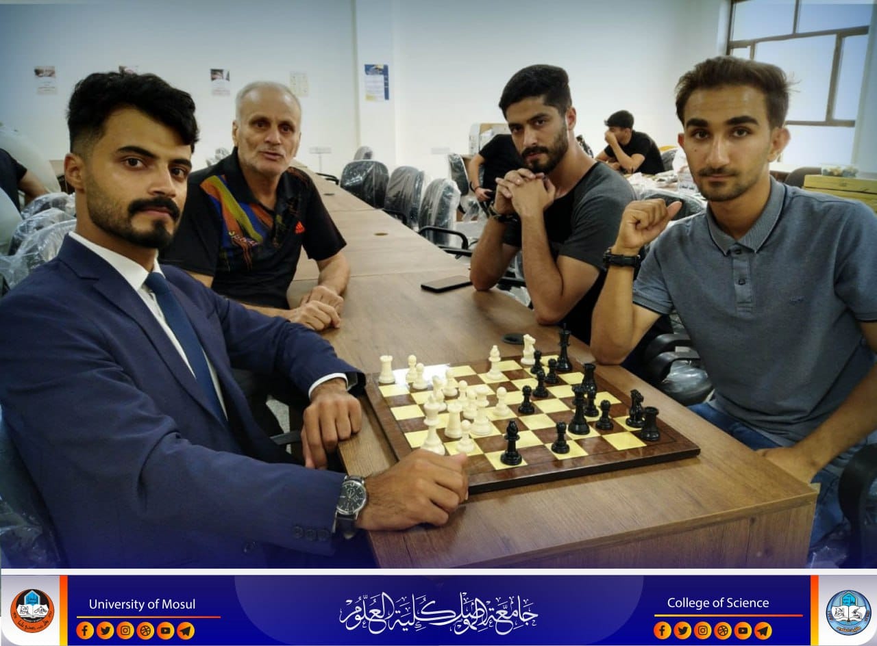 Under the patronage of the esteemed President of the University of Mosul, Professor Dr. Qusay Kamal Al-Din Al-Ahmadi, and as part of our college’s efforts—represented by the esteemed Dean, Professor Dr. Hiyam Adel Ibrahim—to invest in students’ athletic talents, a select group of students from our college participated in the Chess Championship organized by the Department of Student Activities for University of Mosul students.