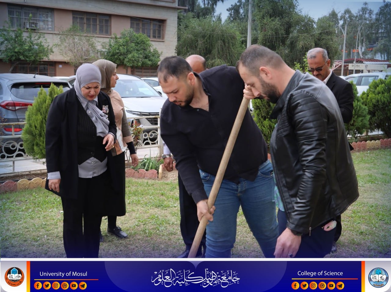 Participation of the College of Science in World Planting Day, where the campaign aimed to enhance green spaces on the university campus and in Nineveh Governorate, to contribute to improving the environment and reducing pollution rates.