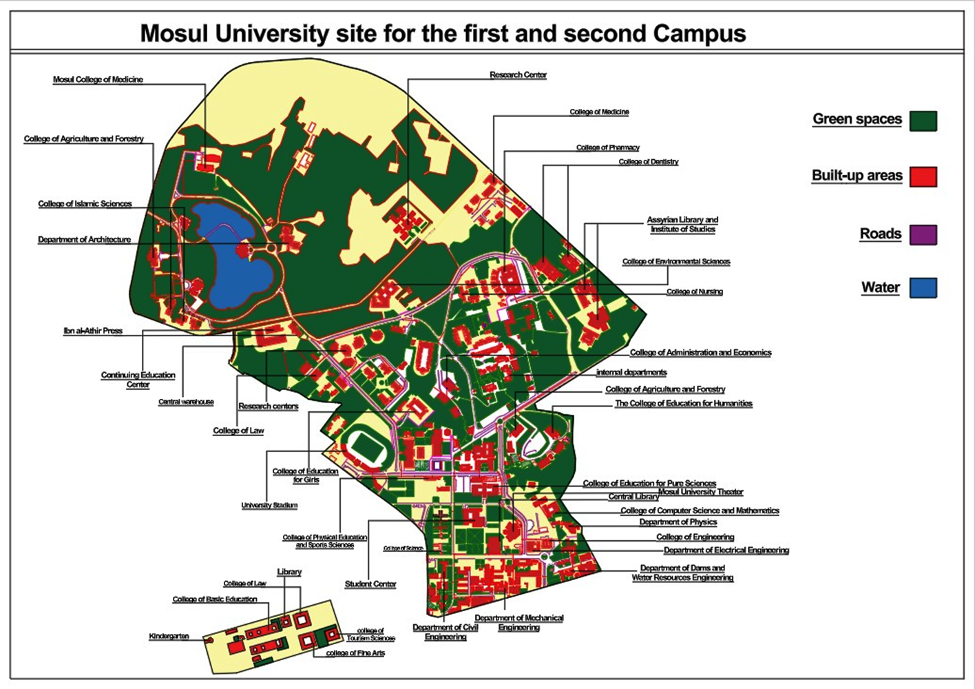 • All colleges, research centers, and administrative units within the University of Mosul’s first and second campuses.