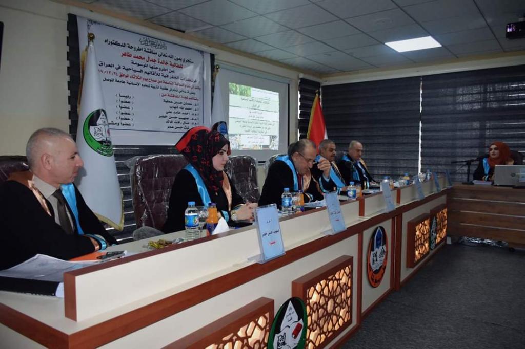 On Tuesday morning, 24/12/2019, Asst .Prof. Dr. Manal Raafat Khaled from the College of Tourism Sciences, Mosul University, participated in the discussion committee of the Doctoral student Khalida Jamal Mahmoud Taher , Mosul University, College of Education for Pure Sciences for her thesis entitled (Geographical pillars of The Tourist Regions in Iraq) . The discussion committee was headed by Prof.Dr. Noman Hussein Attia and included each of Prof. Dr. Ahmed Taha Shihab , Asst, Prof . Dr . Ahmed Hamed Ali, Prof. Dr. Suhaib Hassan Khader, Asst .Prof. Dr. Manal Raafat Khaled as members , and Prof. Dr. Laith Hassan Omar as a member and a supervisor . At the end of the discussion , it was announced that the student received a doctorate degree. Congratulations to the student ,the supervisor, and the members of the discussion committee.