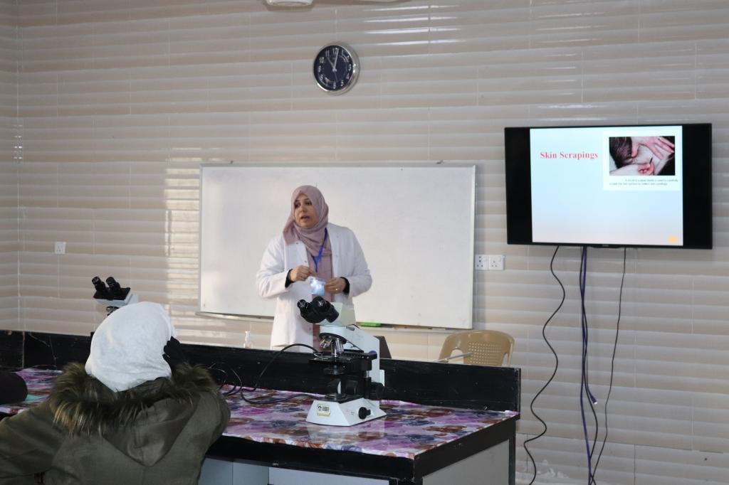 Between 16th-17thof December 2019, Department of Microbiology, College of Veterinary Medicineorganised a training course, titled: “Causative Agents of Skin diseases in Farm Animals”. This training course brings veterinarians and researchers to refresh their knowledge and experience in the field of microbiology.It aims to establish good understanding of the principles of most common microbial skin diseases in different farm animals. This course included theoretical and practical information.The syllabus of this course is as follows:First day09:00Registration.09.00-09.15Opening session and welcoming.09.15-09.45Dermal lesions and their importance in farm animals. (Dr. Manal Himmadi Hasan).09.45-10.15 Lumpy skin Disease. (Dr. Safwan Yousif Albaroodi).10.15-10.40Dermatophytosis in farm animals.(Mrs. Sumaya Yaseen).10:40-11.00Diagnosis of fungal skin infections in farm animals. (Dr. Israa Ibrahim)11.00-11.30 Coffee.11.30-12.30Diagnosis of bacterial and fungal skin infections in lab. (practical).(Saba Abdul Raheem, Ebtehal Nowfal, Rahma Taher). Second day09.00-09.30Bacterial skin infections in farm animals. (Dr.Balsam Yahya).09.30-10.00Dermatophylosis and Clostridial cellulitis. (Dr. Mohammad Ali).10.00-10.30Parasitic skin infections in farm animals. (Dr. Eman Ghanim).10.30-11.00 Dealing with the skins of farm animals after slaughtering between reality and ambition.(Dr. Haitham Sedeeq Albakri).11:00-11.30Coffee.11:30-12.30Diagnosis of parasitic skin infections in lab. (practical).(Dr. Nadia Hamed, Mostafa Salim, Baydaa Younis, Waad Khalid)12.30 Close.