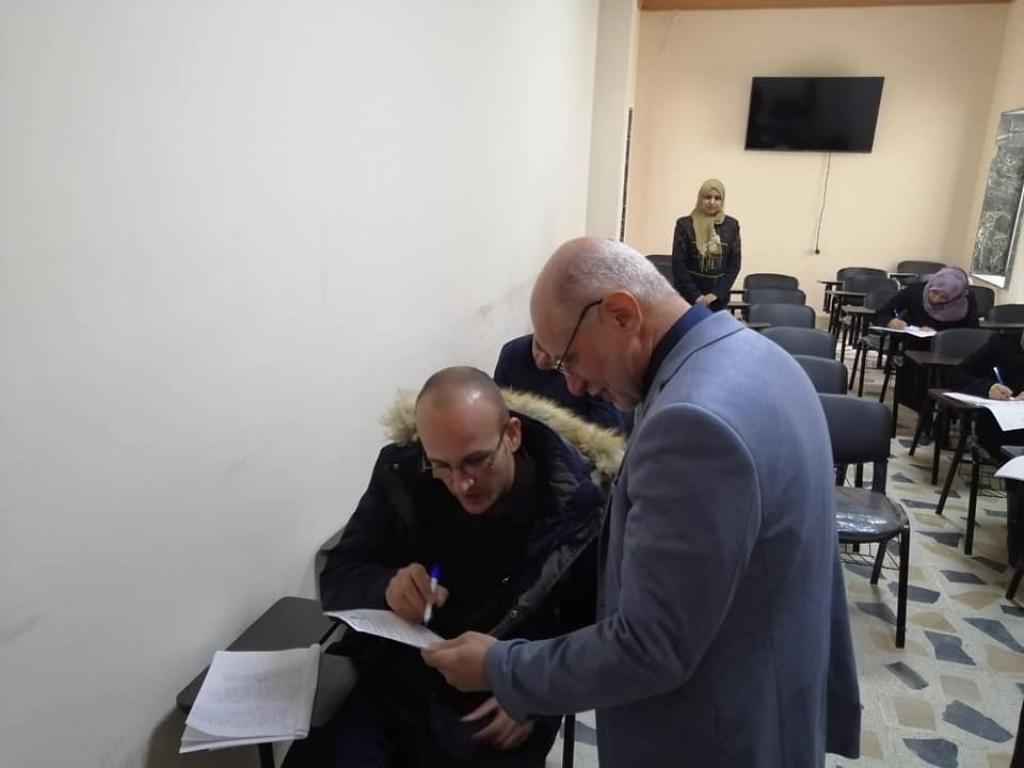 An inspecting visit was conducted on 9thof January 2020 by the dean of College of Veterinary Medicine, Prof. Dr. Dhafer Muhammad Aziz to the exam hall to follow up the progress of the final exams of the 1stsemester, 2019-2020.He got acquainted with the performance of the exam executive committees and listened to the students’ feedbacks. He encouraged to provide the necessary requirements for the examination to be performed in an appropriate atmosphere that would help the student to answer correctly.At the end of his visit, the dean wished all the students’ success and approval in the performance of the exams.
