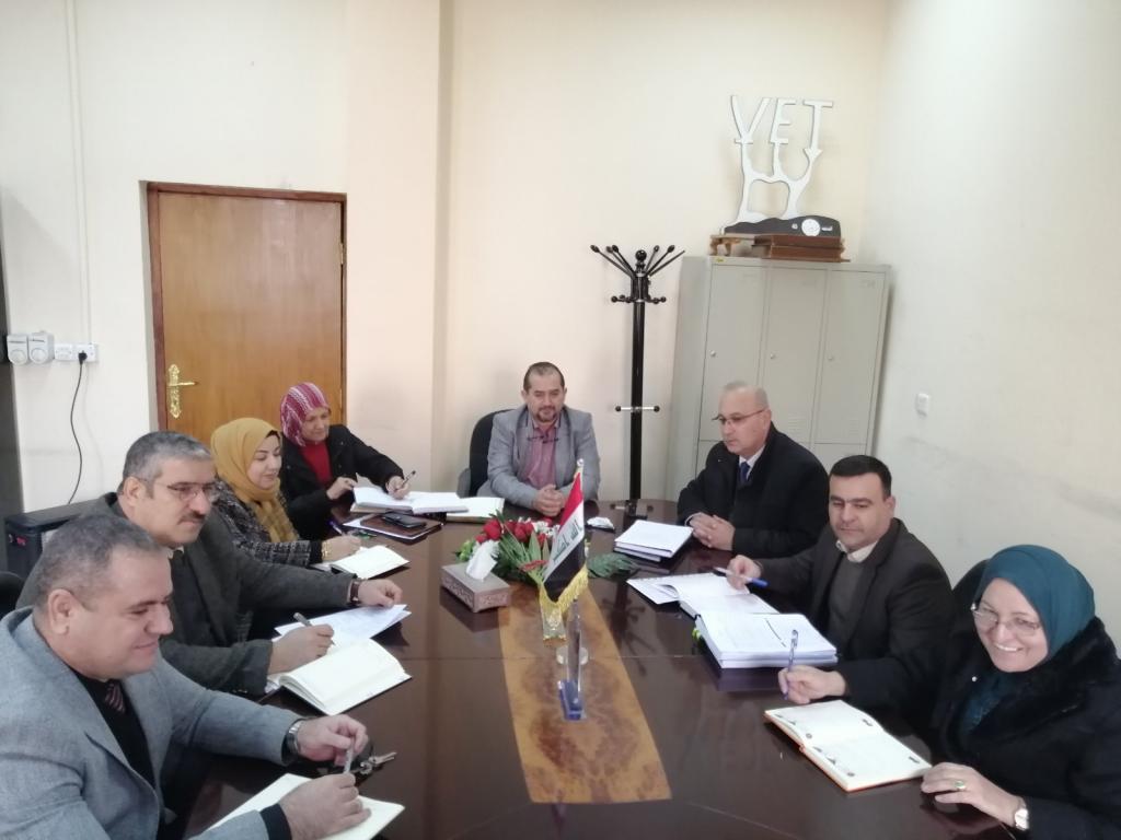 The Council of the College ofVeterinary Medicineheld its regular meeting on Sunday morning 12thJanuary , 2020, chaired by the dean of the college Professor Dr. Dhafer Mohammad Aziz and the presence of the dean assistant for administrative Affairs Assistant Prof. Dr. Saevan Saad Al-Mahmood, and the heads of various departments:Internal and Preventive Medicine department, Pathology and Poultry Diseases department, Surgery and Theriogenology department, Anatomy department, Microbiology department, physiology, biochemistry and pharmacology department and Veterinary Public Health department and representative of the Nineveh Academic Syndicate.The meeting focused on several topics of interest to the college, including conveying the recommendations of the University of Mosul’s council, approving a number of scientific research, and forming committees to discuss doctoral dissertations. The council also discussed the matters related to final exams for the first semester of postgraduate and graduate students.